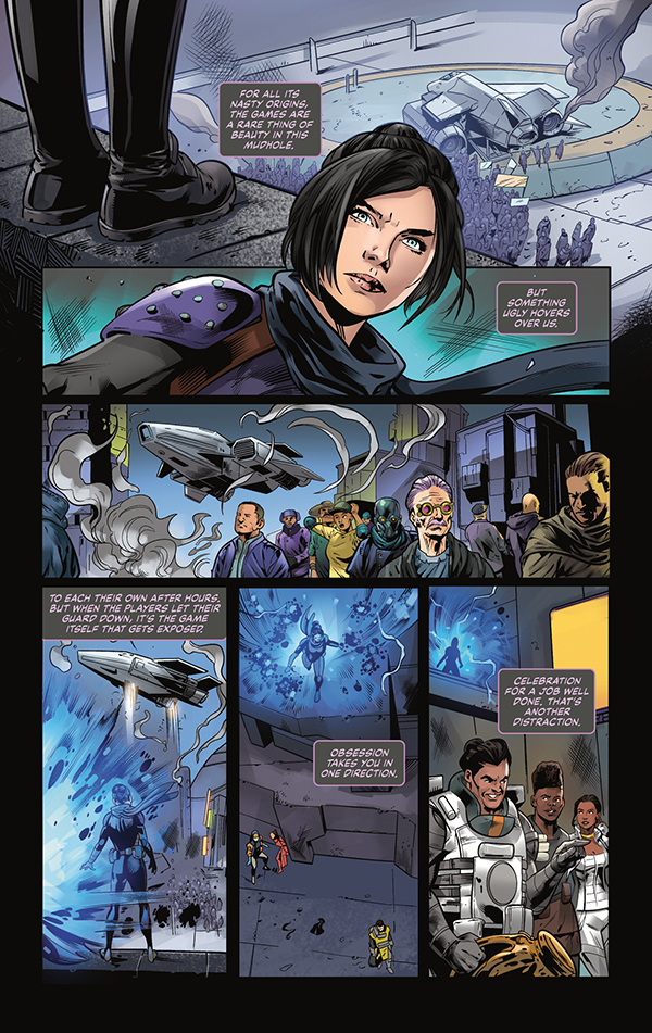 The legends of the arena have been swept up in a night of total chaos as multiple crises come to a head, threatening to destroy Solace. Will the few gladiators left standing be able to work together to save their grungy neon city or will they be defeated by the Syndicate, orchestrating chaos across the galaxy?