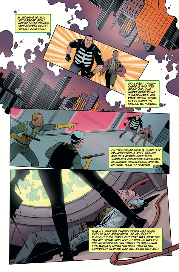 Things have gotten crazy in Black Hammer! First a parallel Spiral City collided with the actual one, spawning a multiverse nightmare of heroes and villains from both worlds going to war, and now Lucy Weber picks back up the mantle of Black Hammer and teams up with Skulldigger for answers on how to end the madness.