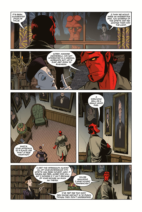 Hellboy works with a psychic to clear a haunted mansion for auction. But the ghosts in residence aren't quite ready to go gentle into that good night, and the answer may lie in a connection with the living world . . .