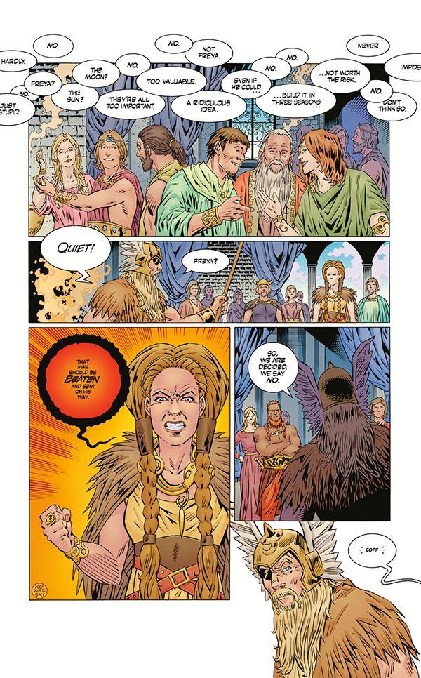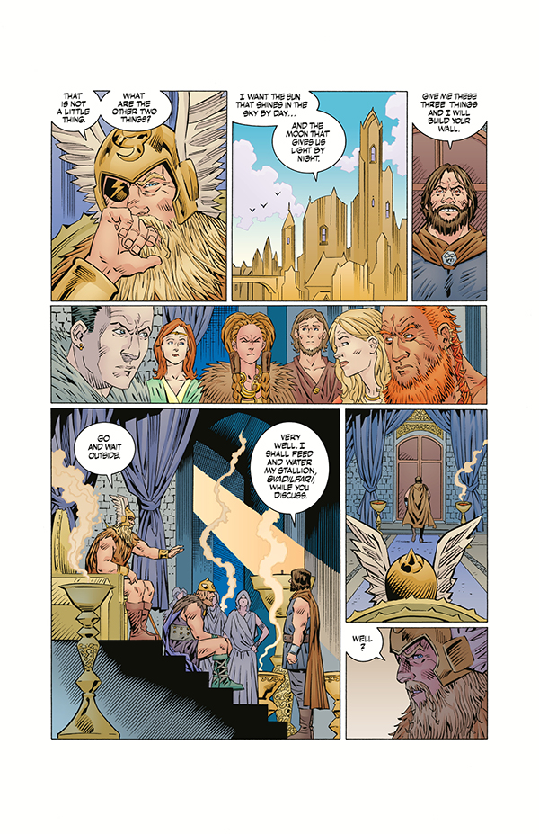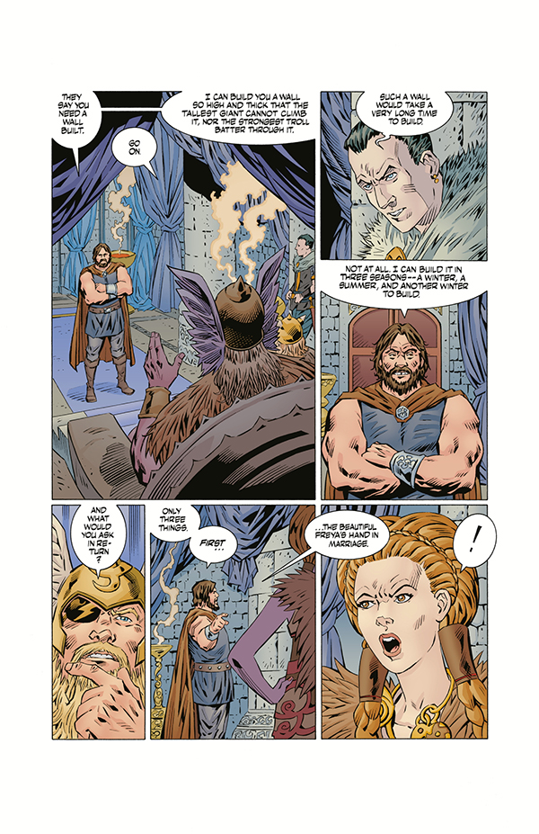 On Loki's suggestion, the gods of Asgard make a deal with a master builder to build a great wall--and the price is great: Freya, the sun, and the moon are at stake, and it seems like the gods may lose the bet.