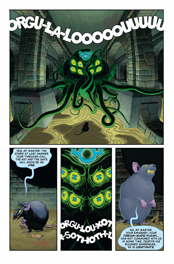 After rejecting the calls of a dark god and his rat emissary beneath the sewers of Spiral City, Cthu-Lou's favorite television program is interrupted by an underground cult and their world-ending horror machine.
