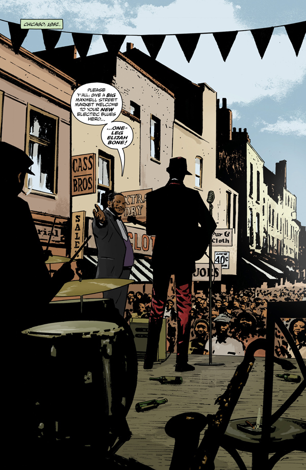The Sword of Hyperborea appears in the unlikely possession of an up-and-coming blues musician in Chicago, 1952. Even for a talented musician, Elijah Bone is a little different, and the strange voice that whispers to him has its own plans for him to fulfill. Delta blues, supernatural creatures, and secret societies collide in the conclusion of this Mignolaverse saga!