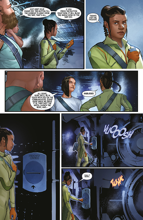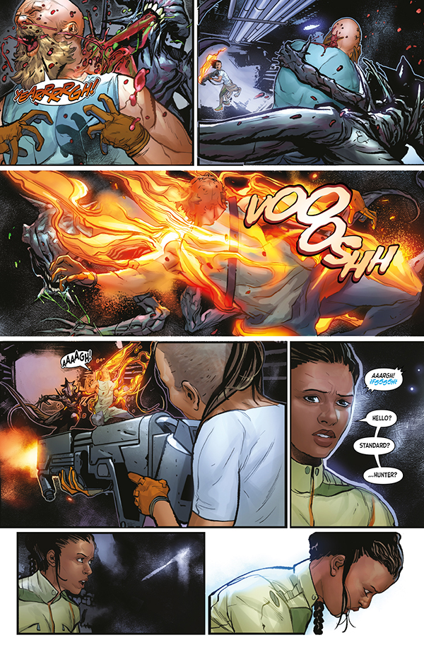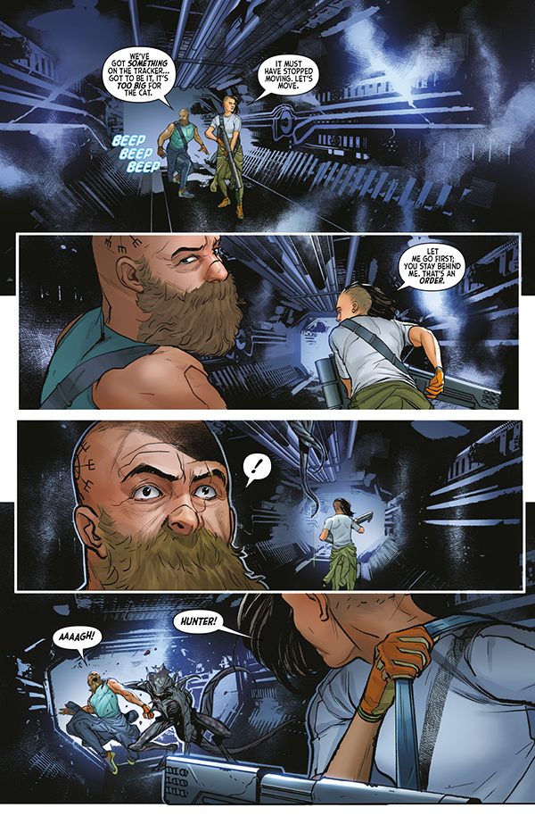 The fight for survival! Sheer terror befalls the remaining crew members as the Alien claims the ship as its feeding ground. With retaliation proving futile, the only way out is to run.