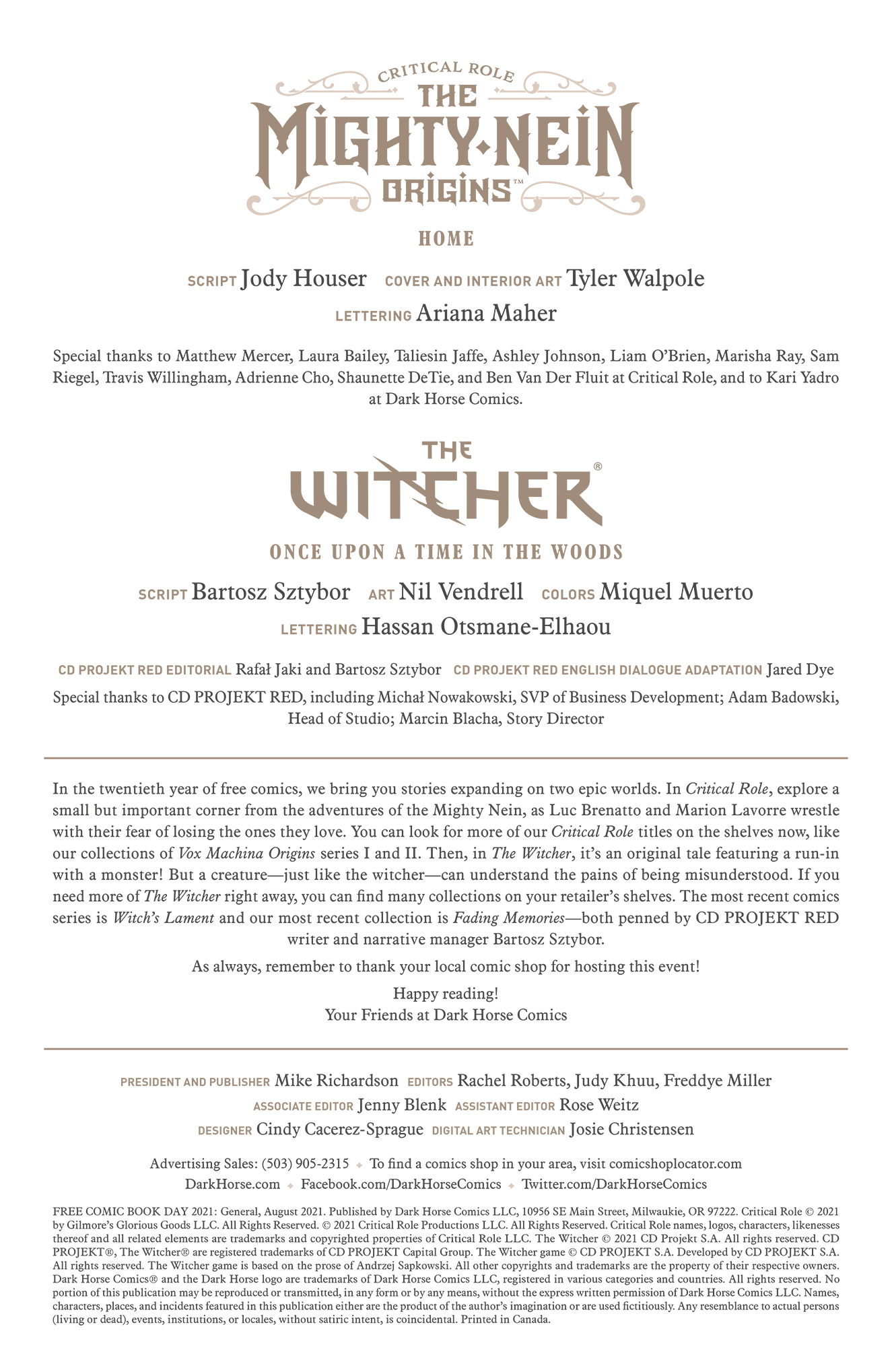 Free Comic Book Day 2021 (General): Critical Role / The Witcher