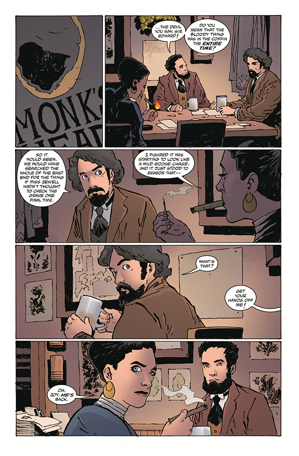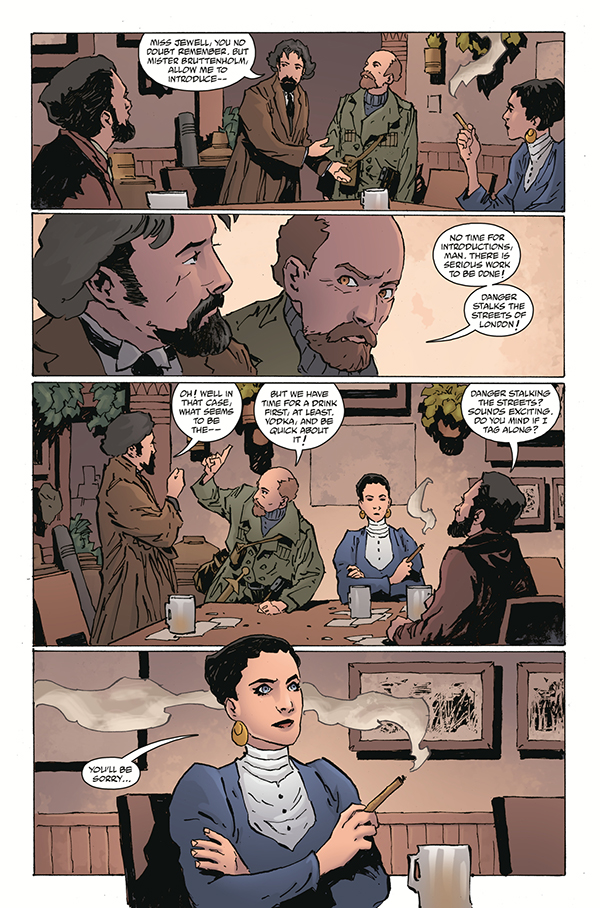 Simon Bruttenholm relates a strange tale to Hellboy and the Professor, this time spinning a tale of dangerous creatures stalking the streets of London. The Silver Lantern Club teams up with an old vodka-loving, werewolf-hunting friend of Edward Grey's to capture the ferocious beasts. But the chase is especially difficult when you're not in your full faculties!