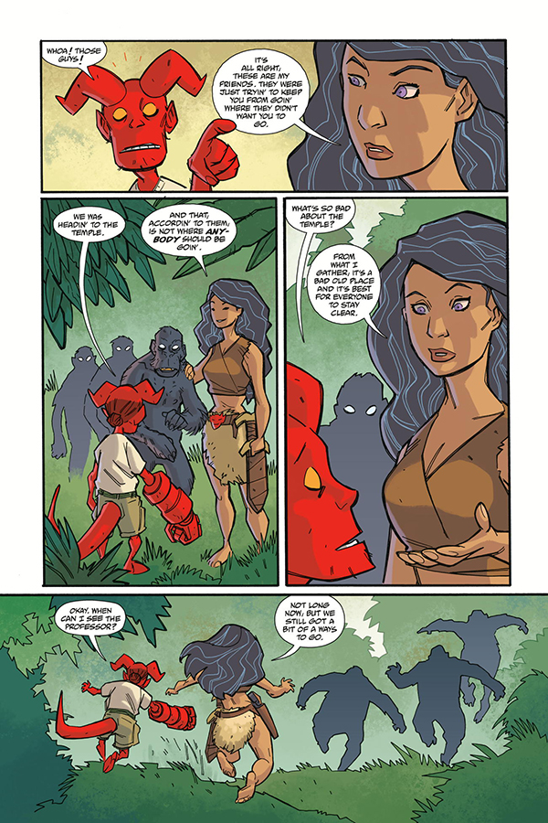 After meeting a missing adventurer and being taken in by the island's Ohnar people, Hellboy and Professor Bruttenholm delve deeper into the strange island's mysteries. Exploring a previous civilization's ruins reveals more about local history . . . and grabs the attention of some gruesome foes!