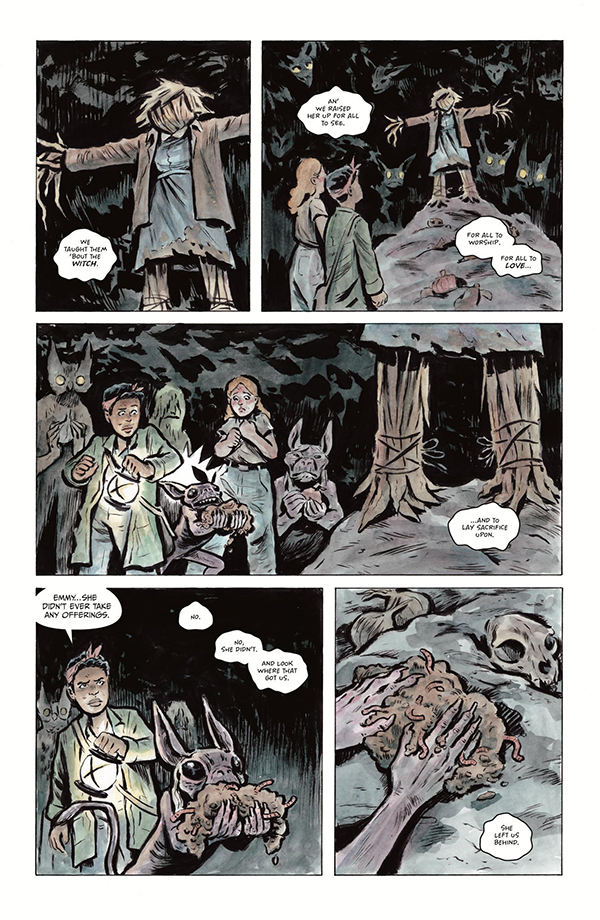 As the acting protector of Harrow County, Bernice sets off to find what is occurring beneath the city and stumbles upon an underground shrine to the last protector of her town and its goblin and ghost worshippers.