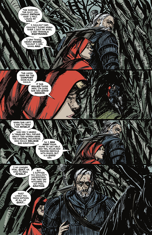 As Giltine returns home, Geralt observes the bizarre behavior of each of those involved. Plagued with unanswered questions, he makes a shocking discovery and must come to terms with his role in it.