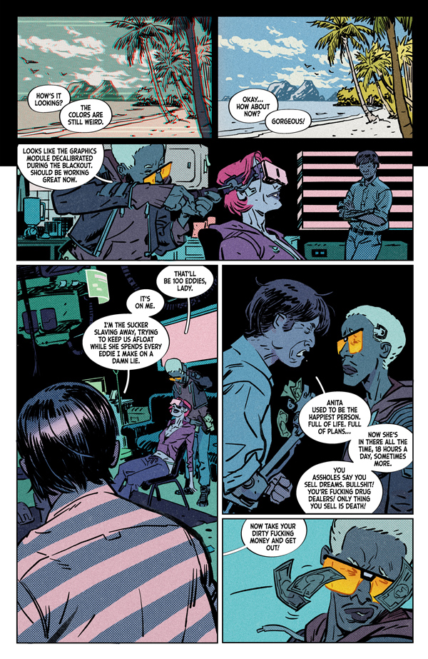 It hurts. Night City hurts. The suffering runs deep and the deeper one falls, the longer the self-prescribed dreams play. Fortune, hope, love--all made possible by DMS technology. But not everyone desires a happy ending. A braindance repairman discovers the answer to pain . . . comes in a blackout.
