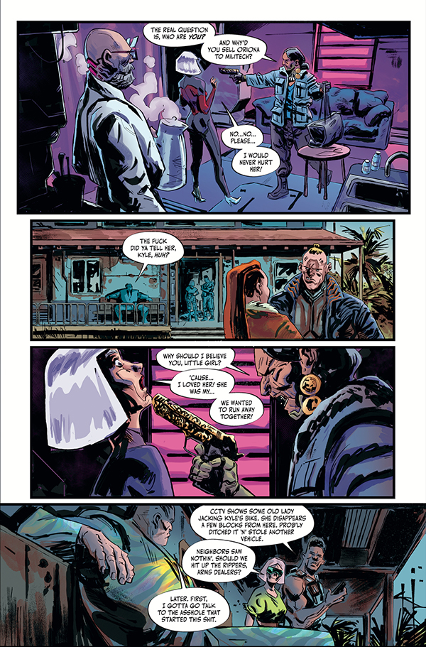 There's still more questions than answers surrounding Oriona's murder. Who pulled the trigger? A Militech mole, her cyberpunk friends, or could it be linked to a long-sought enemy of the Valentinos? Teresa still doesn't know who to trust, and intel isn't all she gained from Kyle . . .