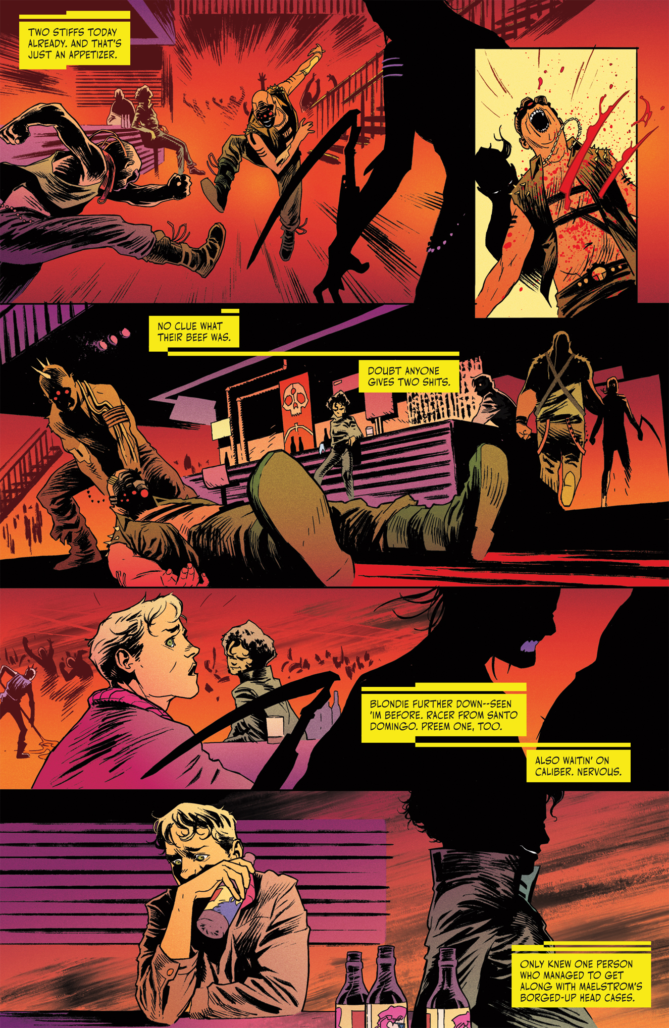 Maelstrom is fired up for the next race and with bodies on the floor, Mint will need Caliber’s attention. With her yaiba revved up, she’s got a hand to play, but being in cahoots with the NCPD is about to catch up to her... it’ll take more than winning to seal this deal.