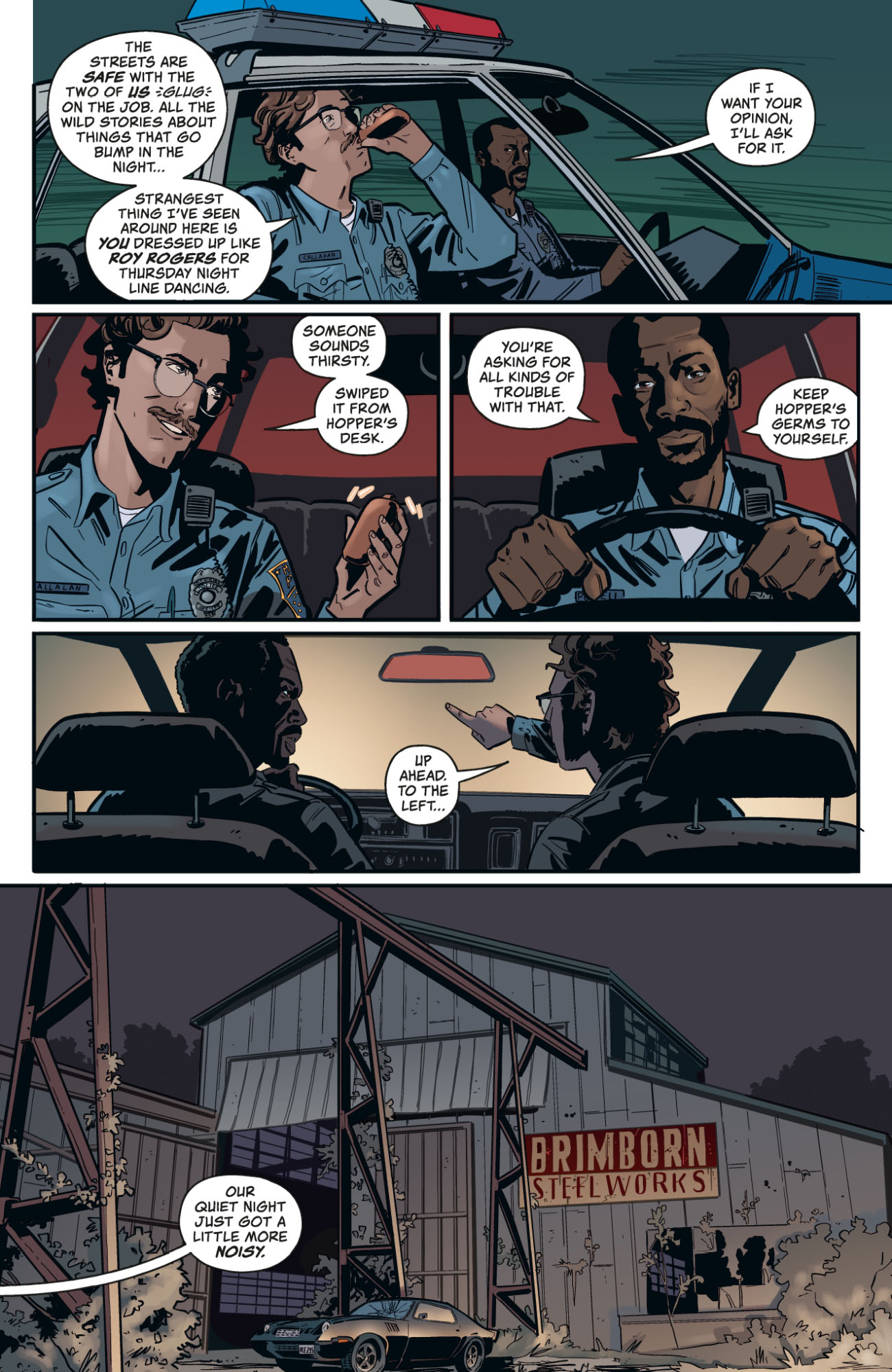 Officers Powell and Callahan patrol the mean streets of Hawkins Indiana with the enthusiasm of two hefty dachsunds pretending to be bloodhounds. Typically, they don't have to chase down more than the occasional petty theft and troublemaking teens but lately the town has been getting weirder, and while they might not get to the bottom of it, they just might be lucky enough to survive it.