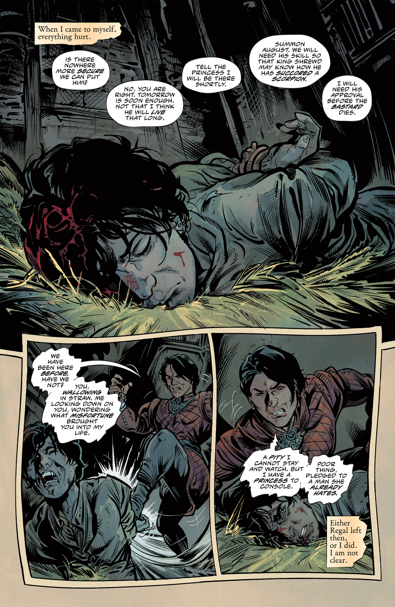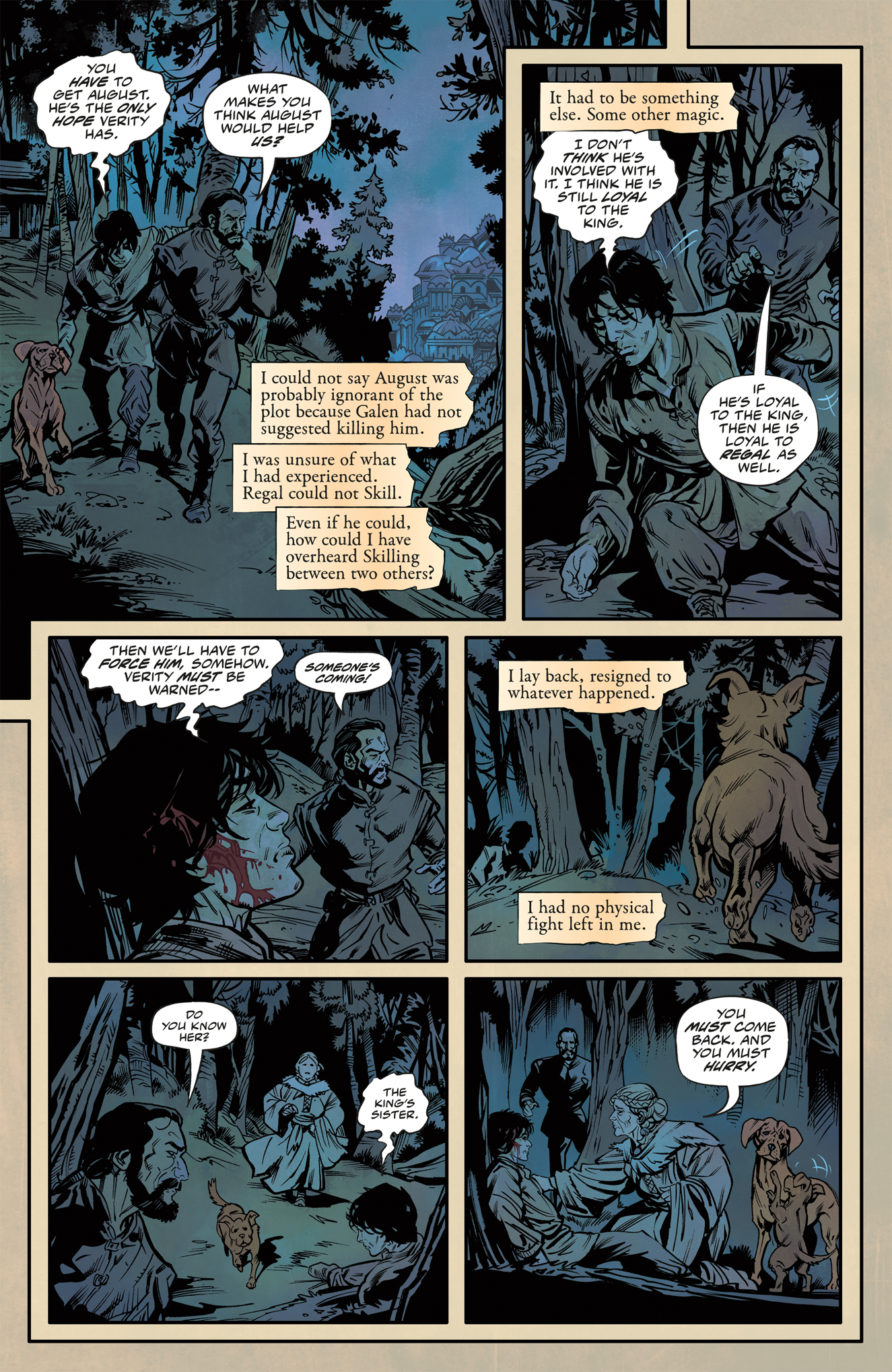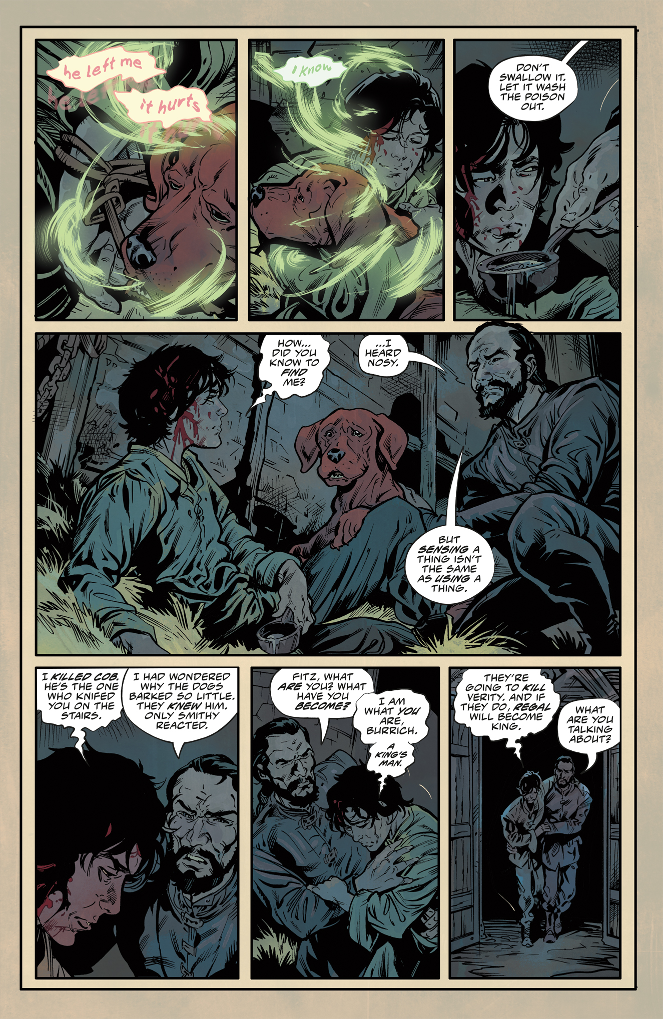In the final issue of Assassin’s Apprentice, secrets and plots are revealed! Fitz must contend with Regal and Galen and receives help from Burrich. More than one life hangs in the balance, and the fate of the kingdom hinges on Fitz.