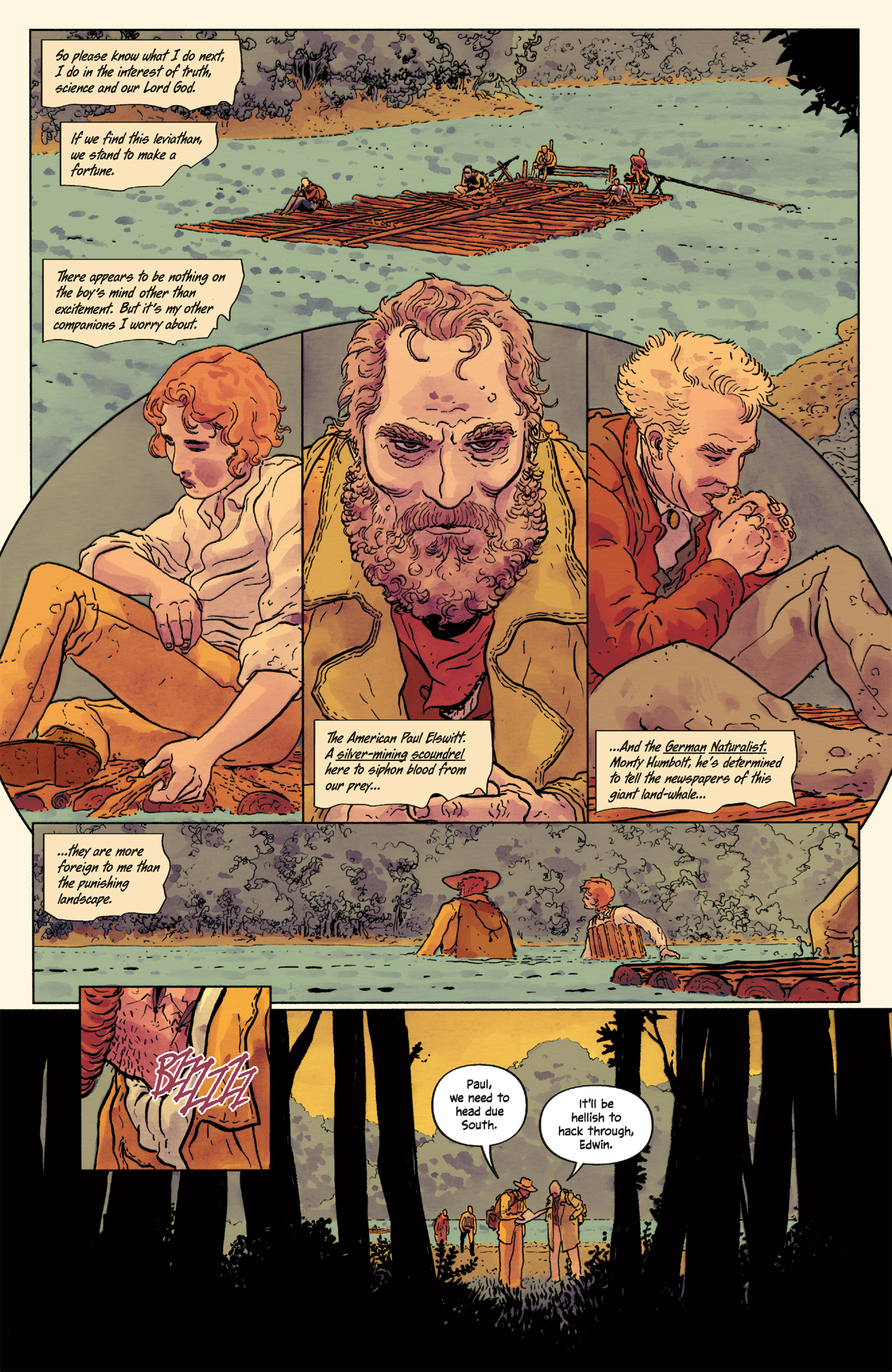 1877. A group of explorers wander the sweltering jungles of Brazil in search of a fabled leviathan. Led by surveyor Edwin Hall, the group is quickly laid to waste by the harsh environment. With few other options, Edwin and his son Aldous take refuge within a steaming maw. Now they are lost within an eldritch landscape. And every moment that passes is another where their flesh is remade.