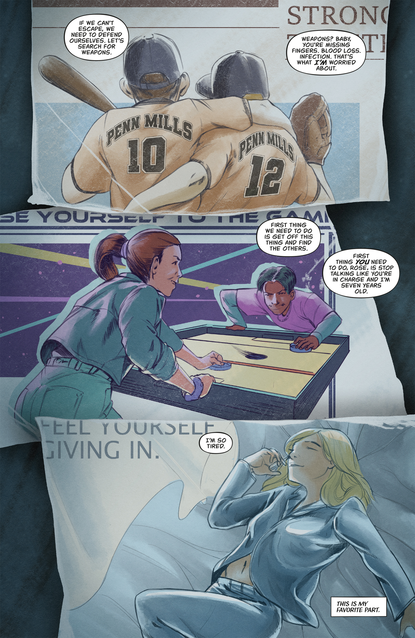 In the aftermath of last issue's violence, the teens find themselves separated into two groups. Scared, injured, and bloody, they try to reunite and escape, but the danger is far from over. More strange creatures emerge from the shadows. It's the mall itself sending these monsters, and it wants to ensure none of its shoppers will ever leave . . .