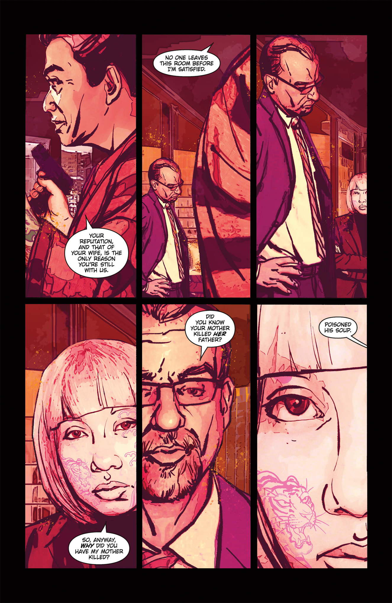 The shocking and emotional conclusion to arc three of Pearl Tanaka's journey from tattoo artist badass to yakuza badass is here!! A shocking confrontation with her ever-mysterious father and the other members of the old school yakuza has Pearl at a crossroads unlike anything shes ever faced before. Another beautiful issue by Jessica Jones cocreator Michael Gaydos.
