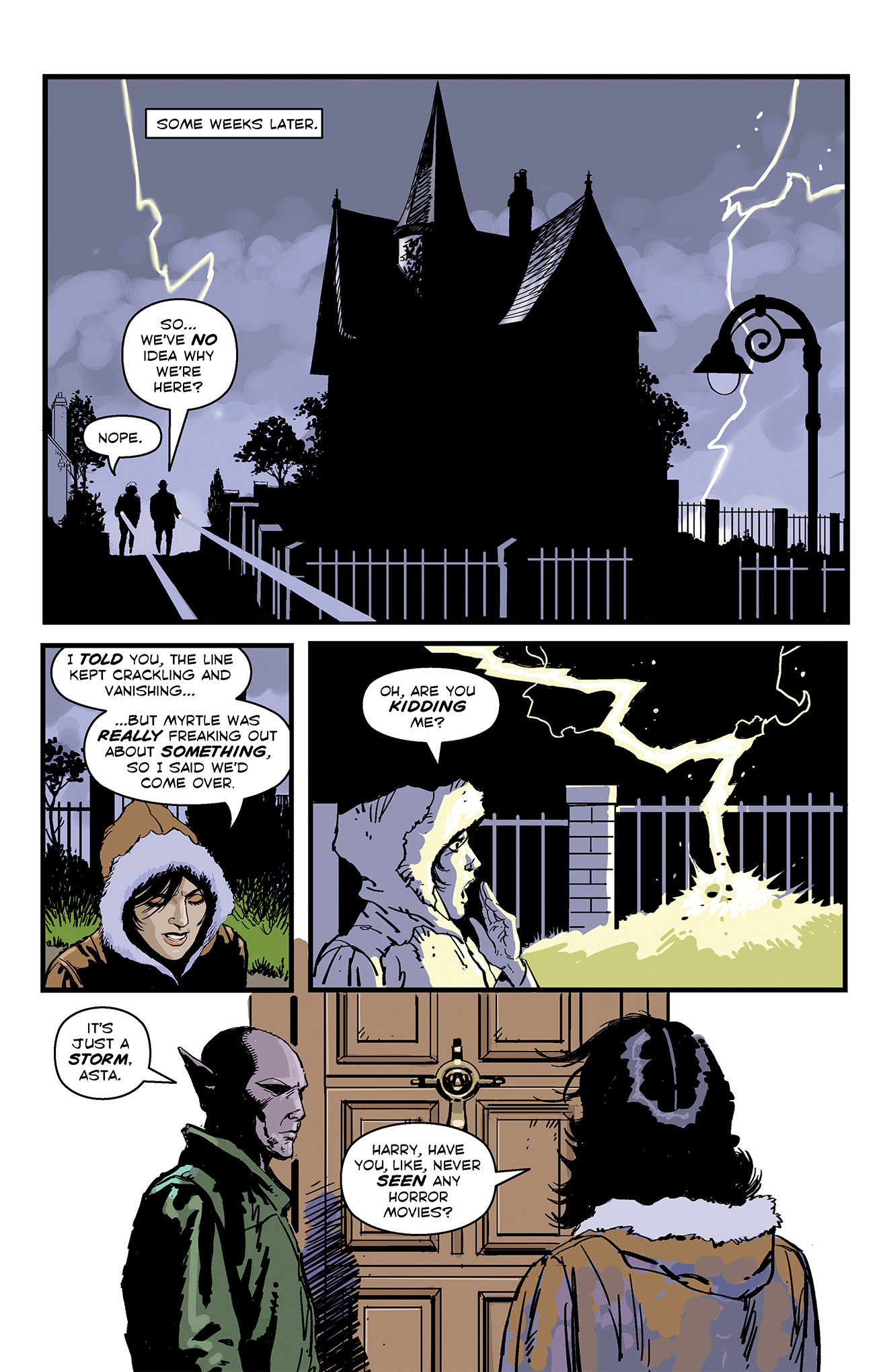 Celebrating the weird and wonderful, we present stories both strange and alien! In Stranger Things, Eleven, Will and Jonathan go to a drive-in theater for a double creature feature, but the local festivities and scary costumes bring back haunting memories. In Resident Alien, Dr. Harry and nurse Asta help an elderly patient in the sleepy, small town of Patience investigate a ghostly presence in her house!