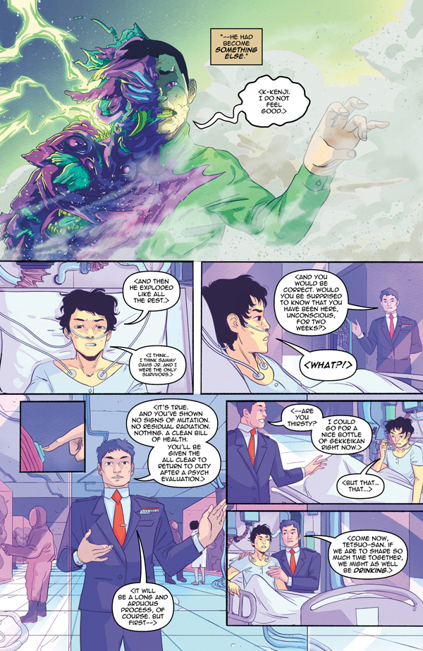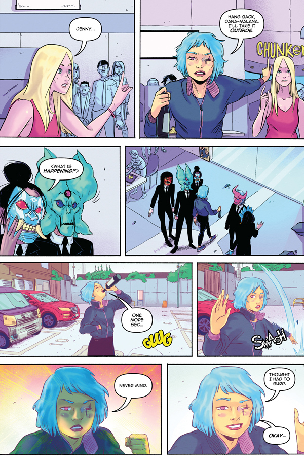 Witness the decade's most hysterically colossal throwdown as Jenny and Dana battle against the Jagokai death cult--and a psychically animated burger mascot! Meanwhile, Director Santo's ominous plans begin to come to evil fruition, and thanks to Jenny's father's journal, Mega Commander Zero's origin continues to be revealed. Plus, the first appearance of a character that will shake the very foundation of Jenny's life!