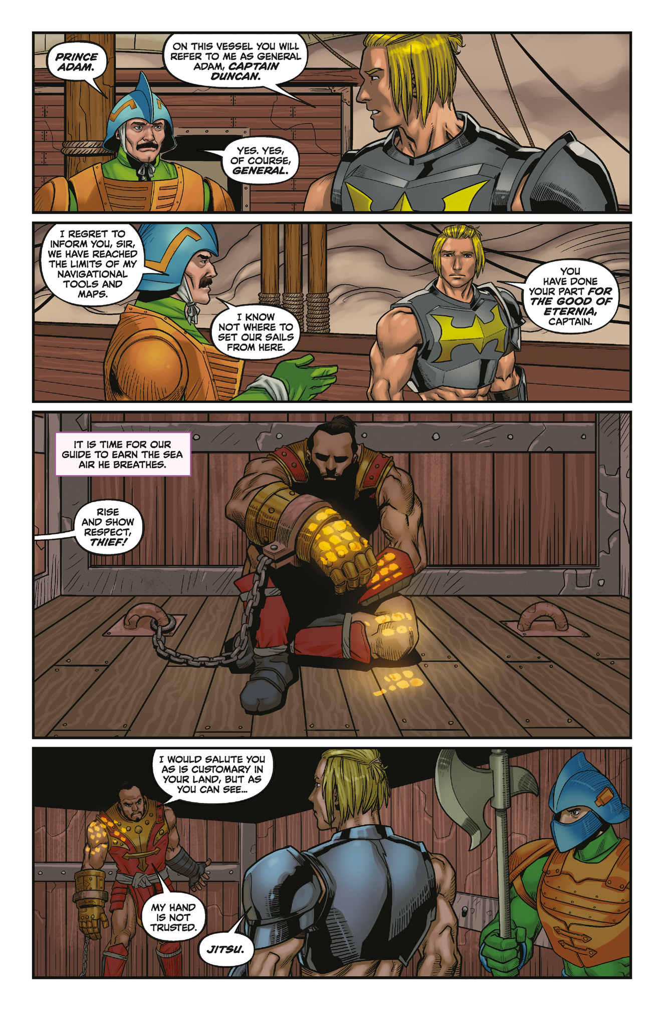 In the depths of Castle Grayskull, The Sorceress attempts to save He-Man from Zodac with more tales of his influence across the multiverse! In a world where champions have fallen, a hard-bitten Duncan and his partner Evil-Lyn take on a strange kidnapping case in MAN-AT-ARMS-FOR-HIRE! And on the Harmony Sea, Adam, Commander of the King's army and the captured thief Jitsu search for the power to conquer Eternia!