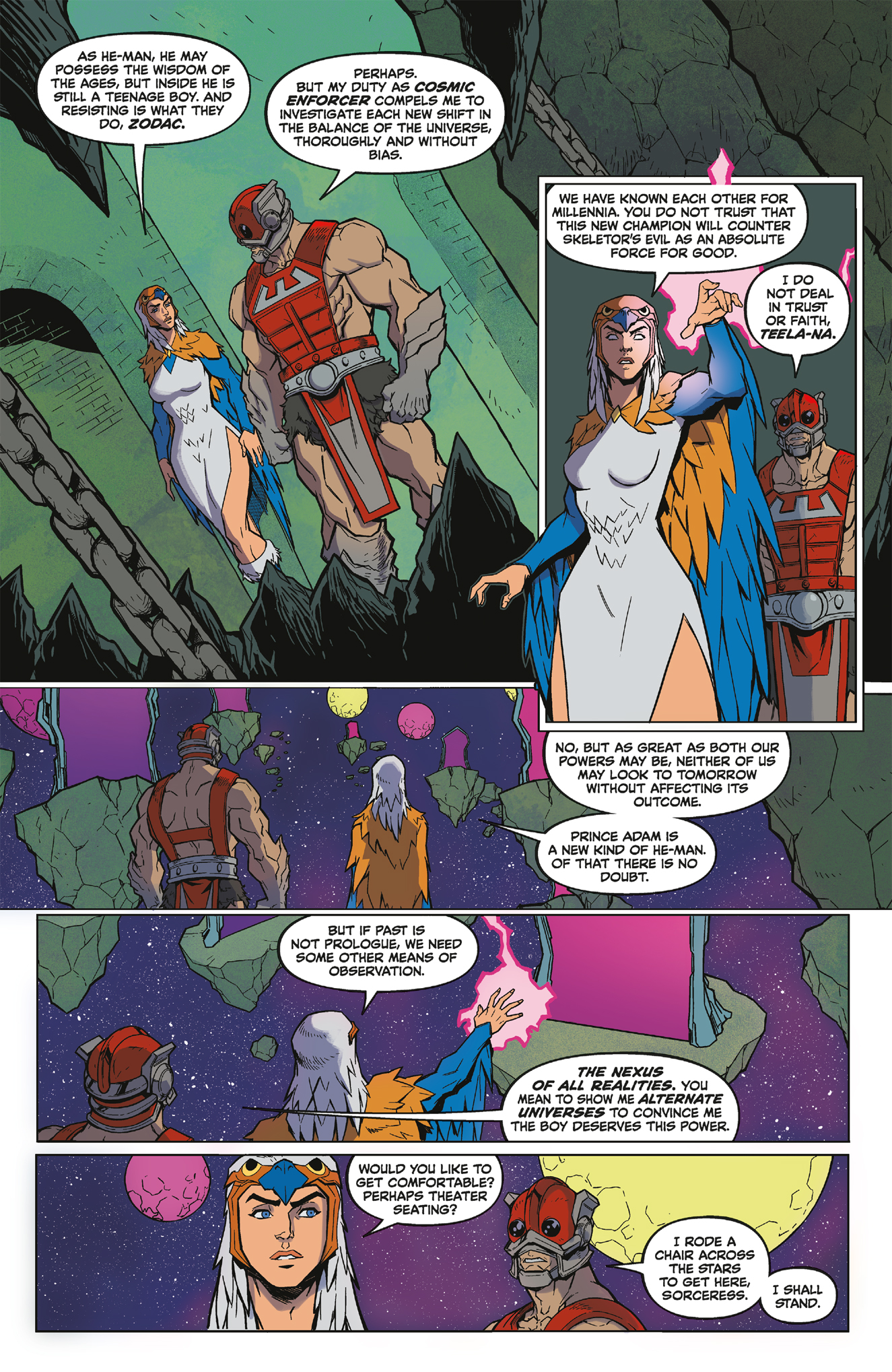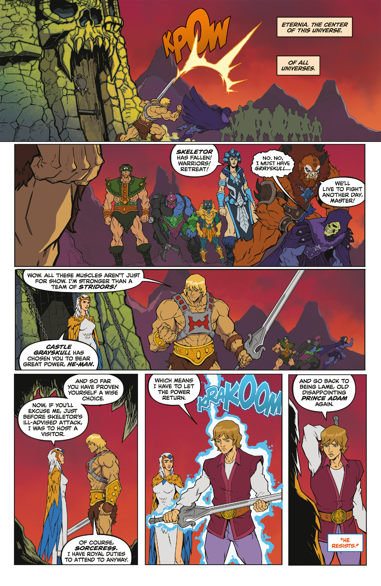 In the depths of Castle Grayskull, the Sorceress and Zodac debate the value of He-Man. To save the life of her champion, the Sorceress must take the Cosmic Enforcer on a tour of the multiverse! First, a tour across a world where a dim, barbaric He-Man bumbles through a world of annoying warrior goddesses and bored demons as he's pursued by a hungry green tiger in a tale drawn by the legendary Sergio Aragonés! Then, a stop in an Eternia where the power of Grayskull summons an entirely different warrior in a horrific ghost story illustrated by Kelley Jones! Written by MOTU alumni Tim Seeley (Injustice vs. Masters of the Universe, Masters of the Multiverse) with a framing story by Eddie Nunez, this is an anthology series not to be missed!