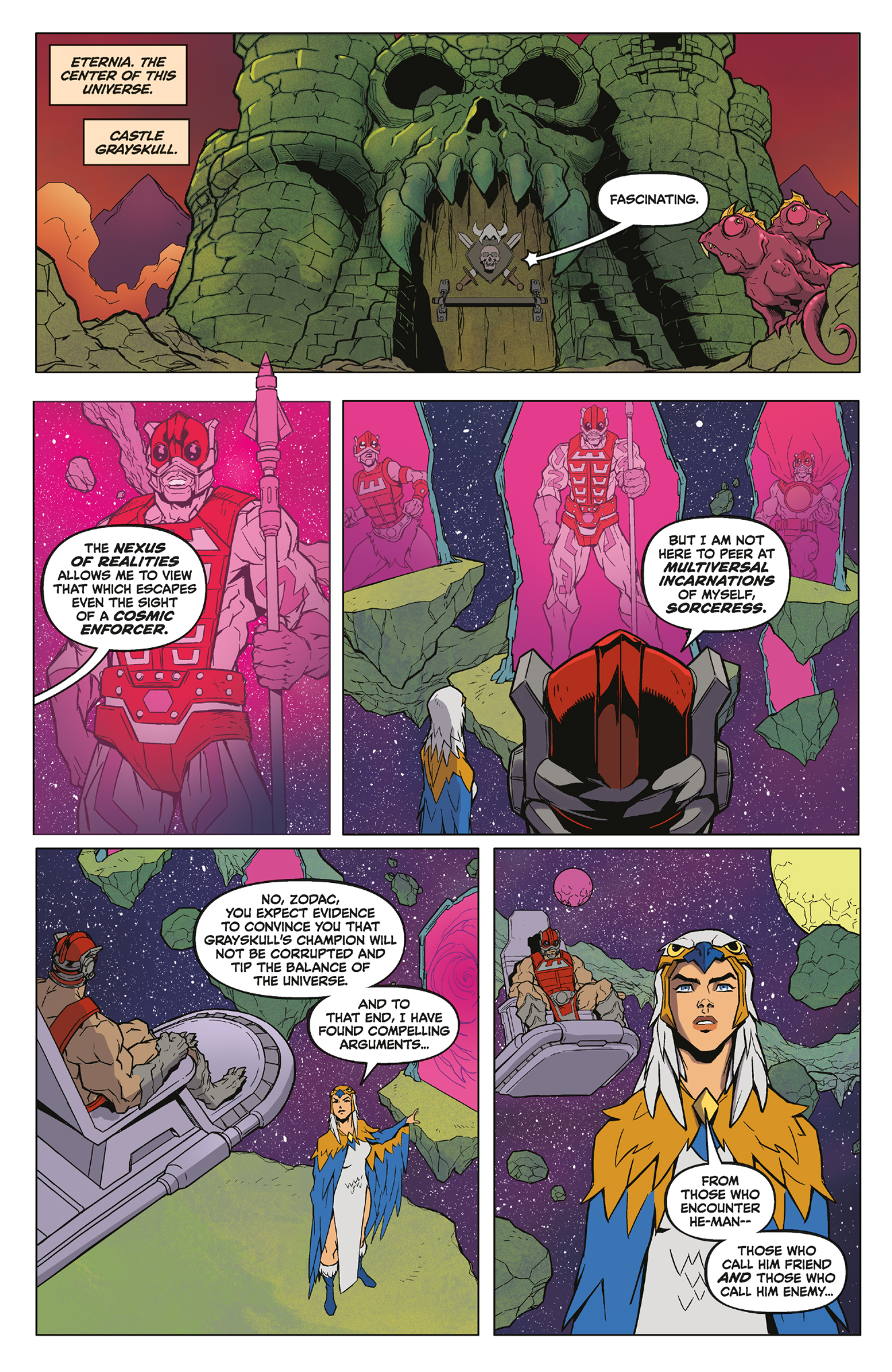 In the depths of Castle Grayskull, The Sorceress attempts to save He-Man from Zodac with more tales of his influence across the multiverse! In a world where champions have fallen, a hard-bitten Duncan and his partner Evil-Lyn take on a strange kidnapping case in MAN-AT-ARMS-FOR-HIRE! And on the Harmony Sea, Adam, Commander of the King's army and the captured thief Jitsu search for the power to conquer Eternia!