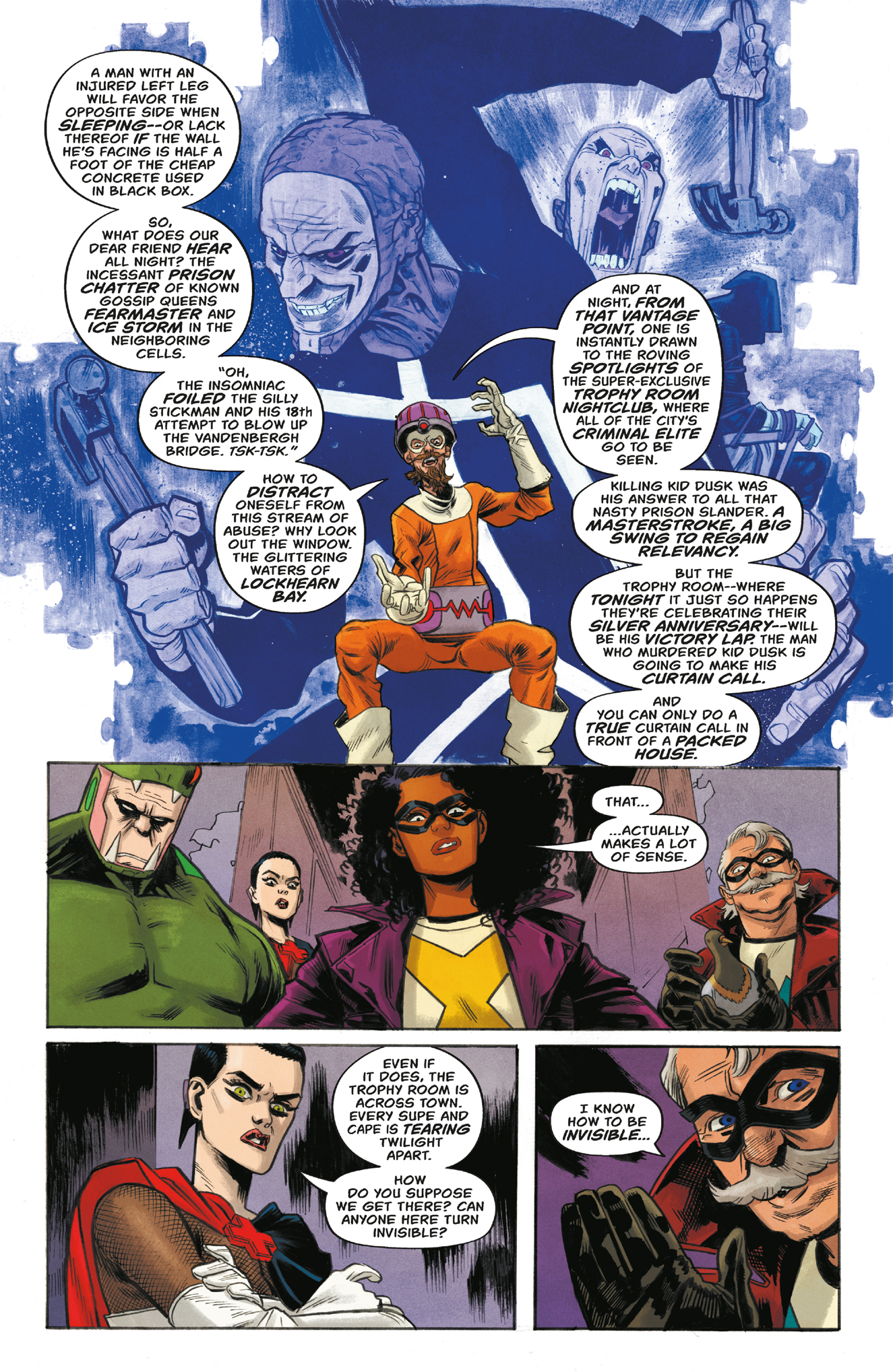 The Stickman has done the unthinkable and murdered Kid Dusk, the sidekick to Twilight Citys premier crime-fighting vigilante the Insomniac. While the Insomniacs superhero teammates are tearing Twilight apart, turning it into a terrifying police state--hoping to find the Stickman before an unhinged Insomniac does. D-list, blue-collar, costumed-criminals have formed an uneasy alliance to hunt down and kill the Stickman themselves in a desperate attempt to end the chaos!