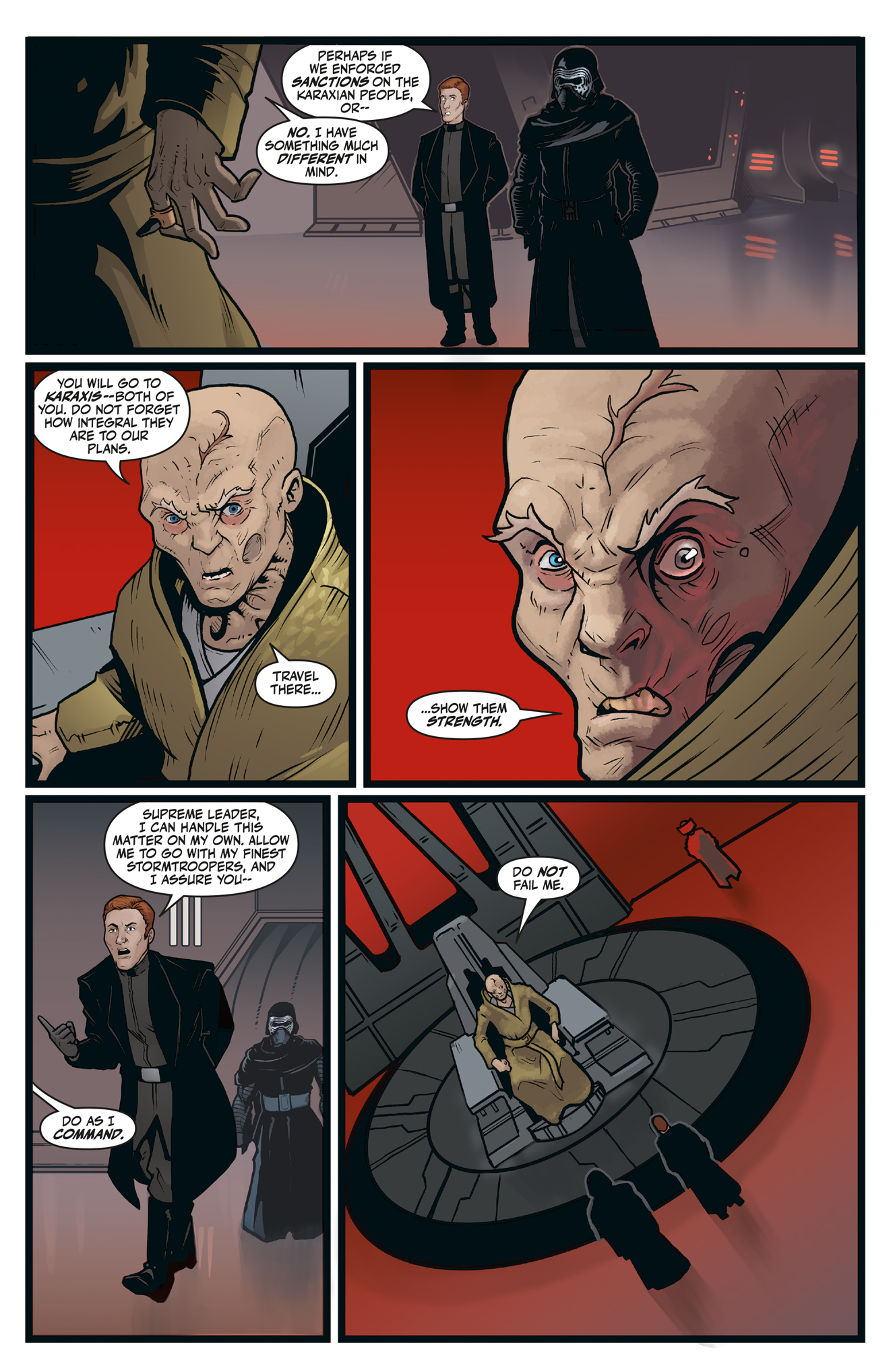 As the Firs Order grows in power, Supreme Leader Snoke dispatches Kylo Ren and General Hux to the planet Karaxis to enforce his will upon the populace. As Ren hunts a fugitive through the wilds, Hux works find a new, cruelly inventive way of enforcing compliance. But how far can the Karaxians be pushed, before they have nothing left to lose?