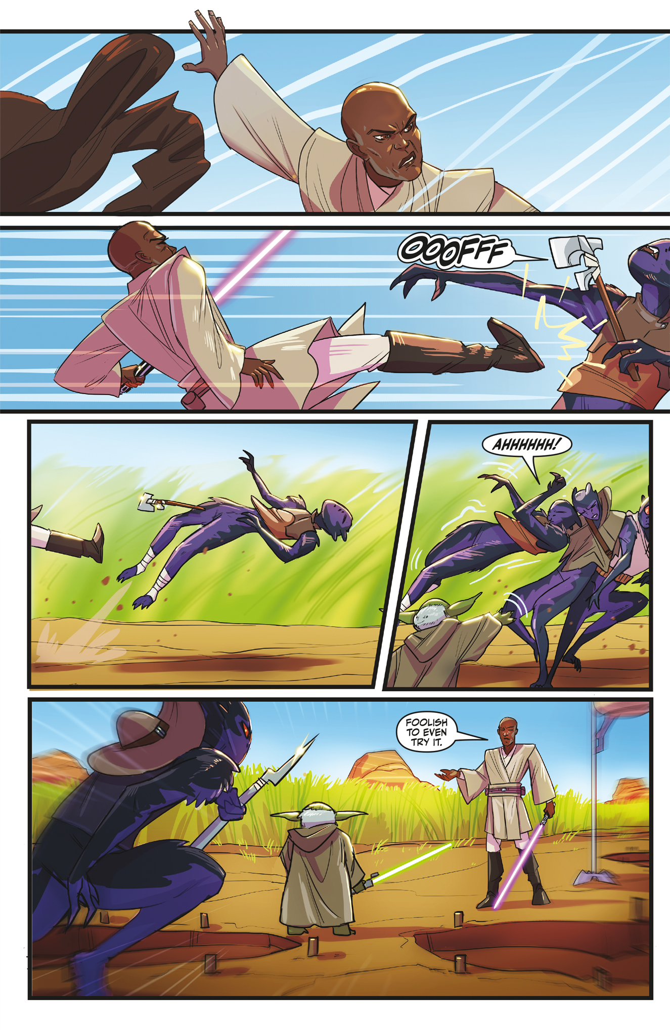 Jedi masters Yoda and Mace WIndu escort a Republic delegation to an archaeological dig, rumored to be the site of a cache of ancient Jedi artifacts. But the lure of the Force is strong, and it's not long before the party comes under attack by marauders intent on taking the relics for themselves, even if they have to go through two Jedi to do it!