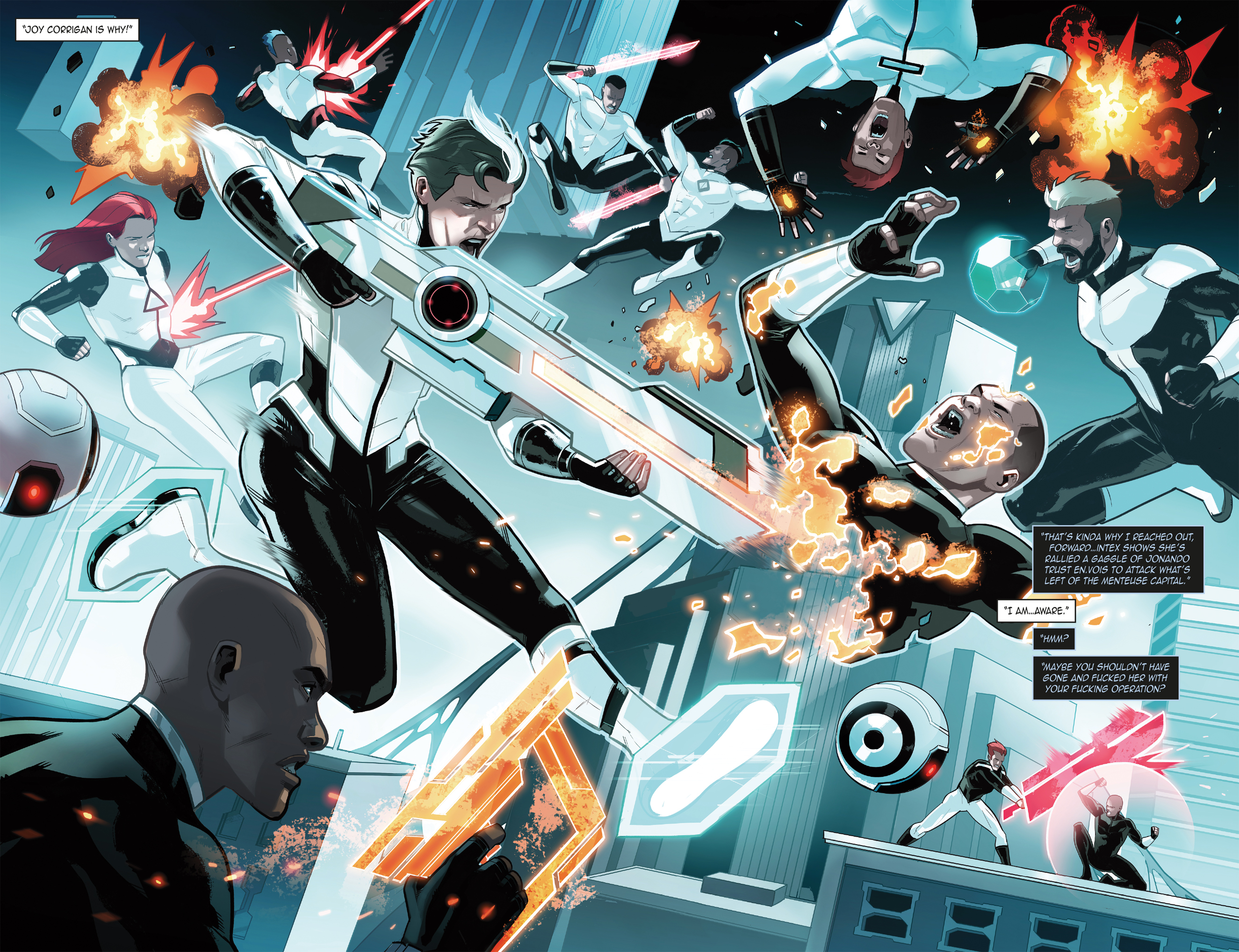 Everything was fine until the joy operation: when one of the city trusts implanted the psyche of one of their en.voi's into master en.voi Joy Corrigan. Now Hampton and Joy live in the same body! They are just getting used to what that means for their life, love, and future when the world decides to blame them for everything that's gone wrong. It's now Joy and Hampton against the world. This is the earth-shattering conclusion to this all-new chapter of this sci-fi extravaganza! If you dug Bendis’ Marvel events and Avengers run, and Stephen's amazing work on Nightwing and X-Men, you will be blown away by Joy Operations.