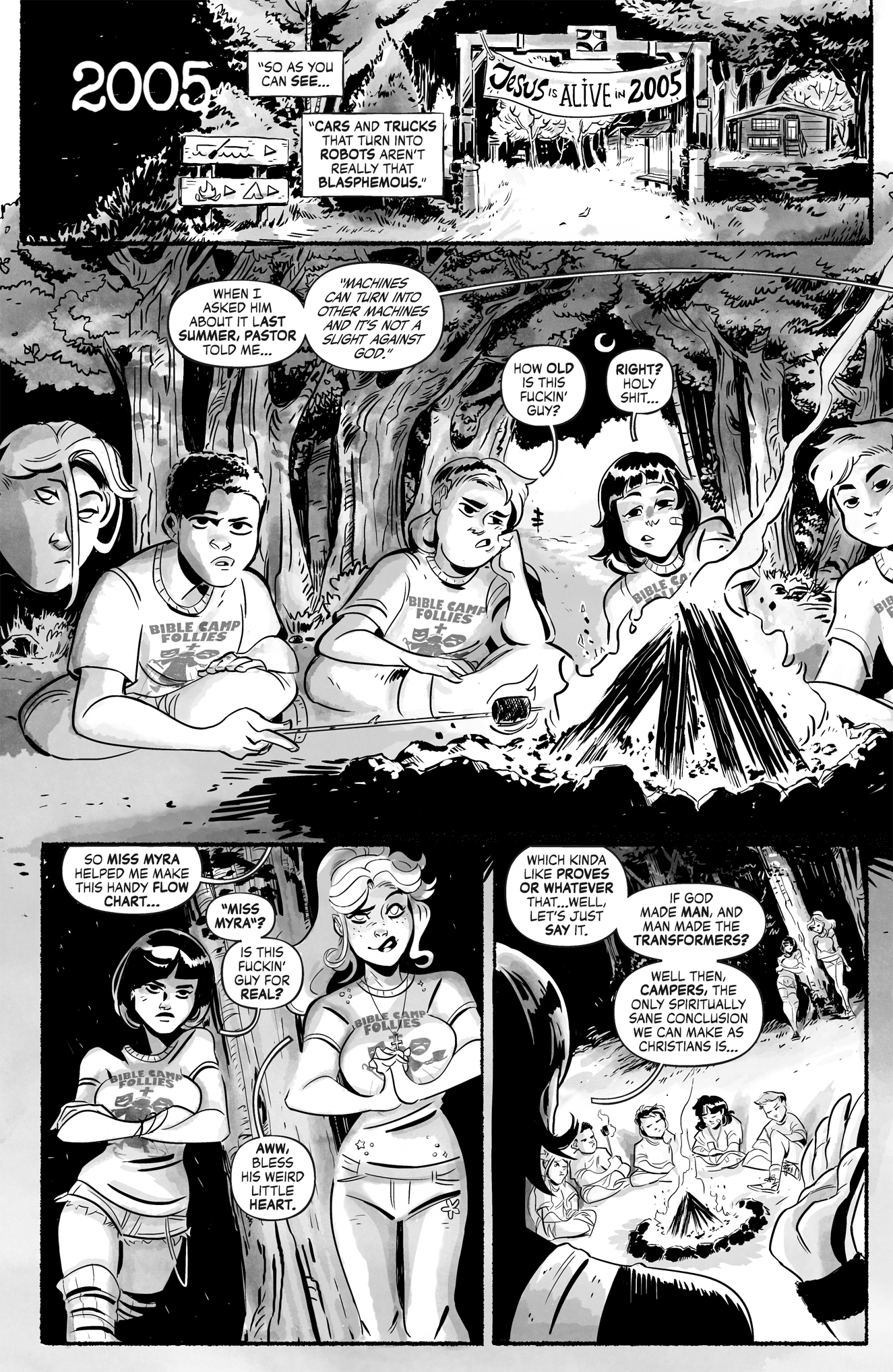 Spend two separate summers at Bible camp with counselor-in-training Elias, who leaves Mooby's behind for a month to teach the kid campers all about the mysteries of both Jesus and the Transformers! But when Elias expresses his affection for fellow counselor Myra Hodgkiss, the legend of the troll known as PillowPants is born!