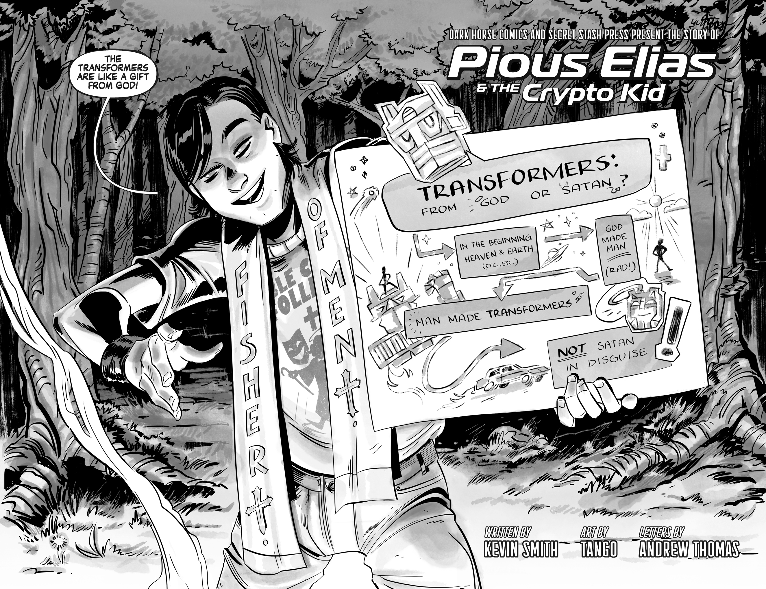 Another Askewniverse anecdote rendered in Clerks-style black & white by guest artist TANGO, featuring crazy characters from across all of Kevin Smith's films!