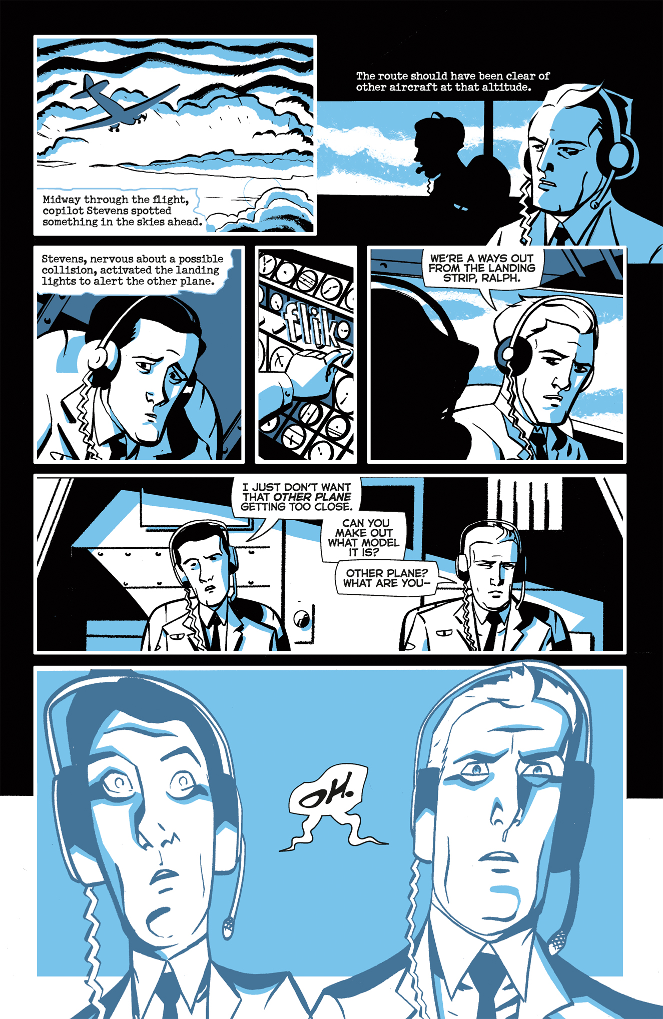 In 1947, Flight 105 departed Boise, Idaho for Pendleton, Oregon, and encountered a fleet of mysterious lights similar to what pilot Kenneth Arnold encountered in the previous issue of Blue Book. As these aviators' paths of alien encounters cross, the quest for truth and what they saw begin to unravel.