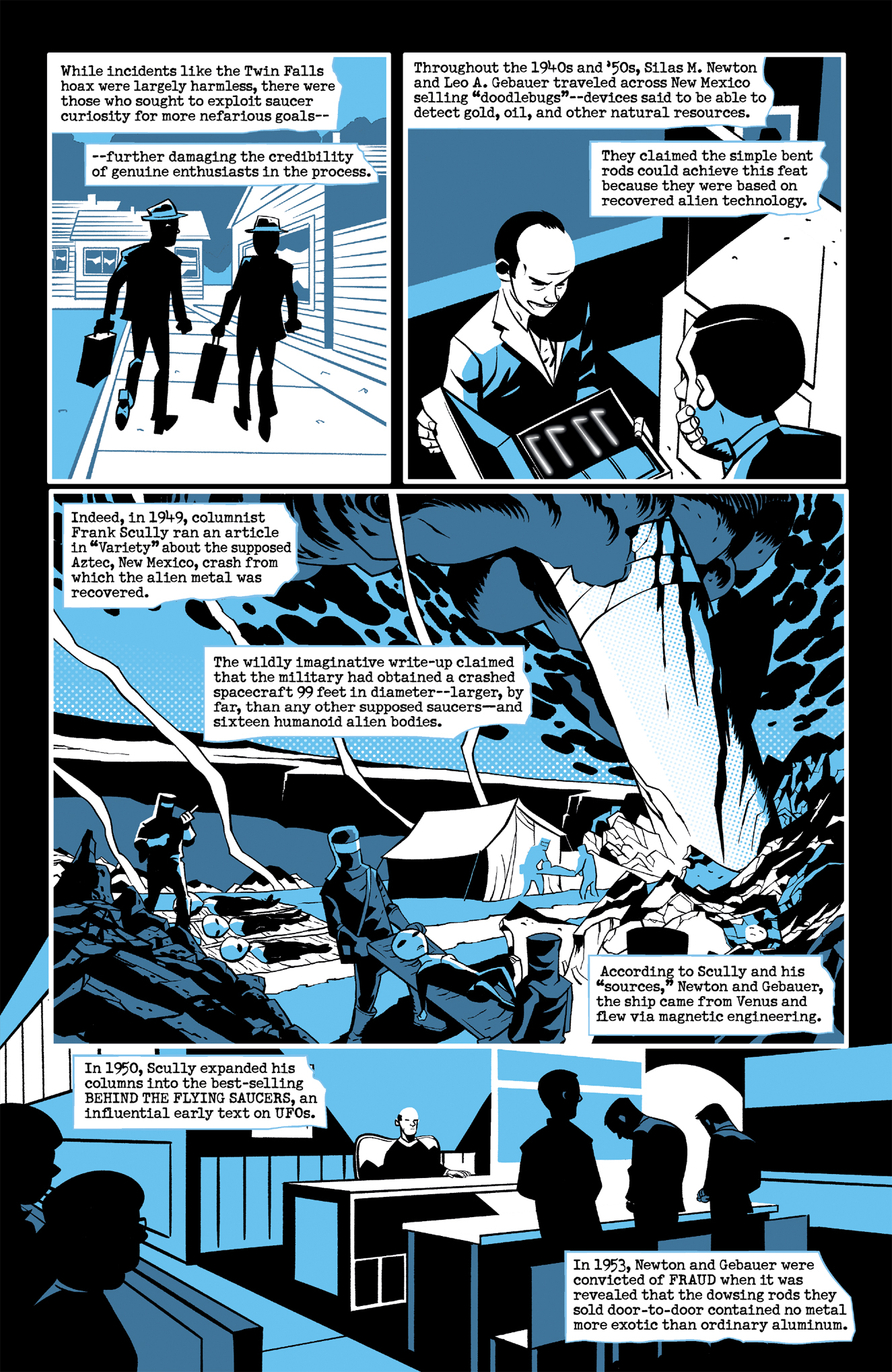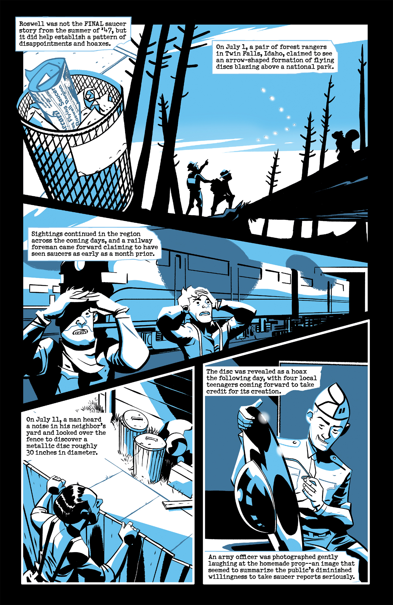 The country's fascination with UFOs grew tremendously after the crash discovery in Roswell, New Mexico and the fervor starts to inspire hoaxes, lies, and further paranoia as the information (whether true or not) spreads across the United States of America.