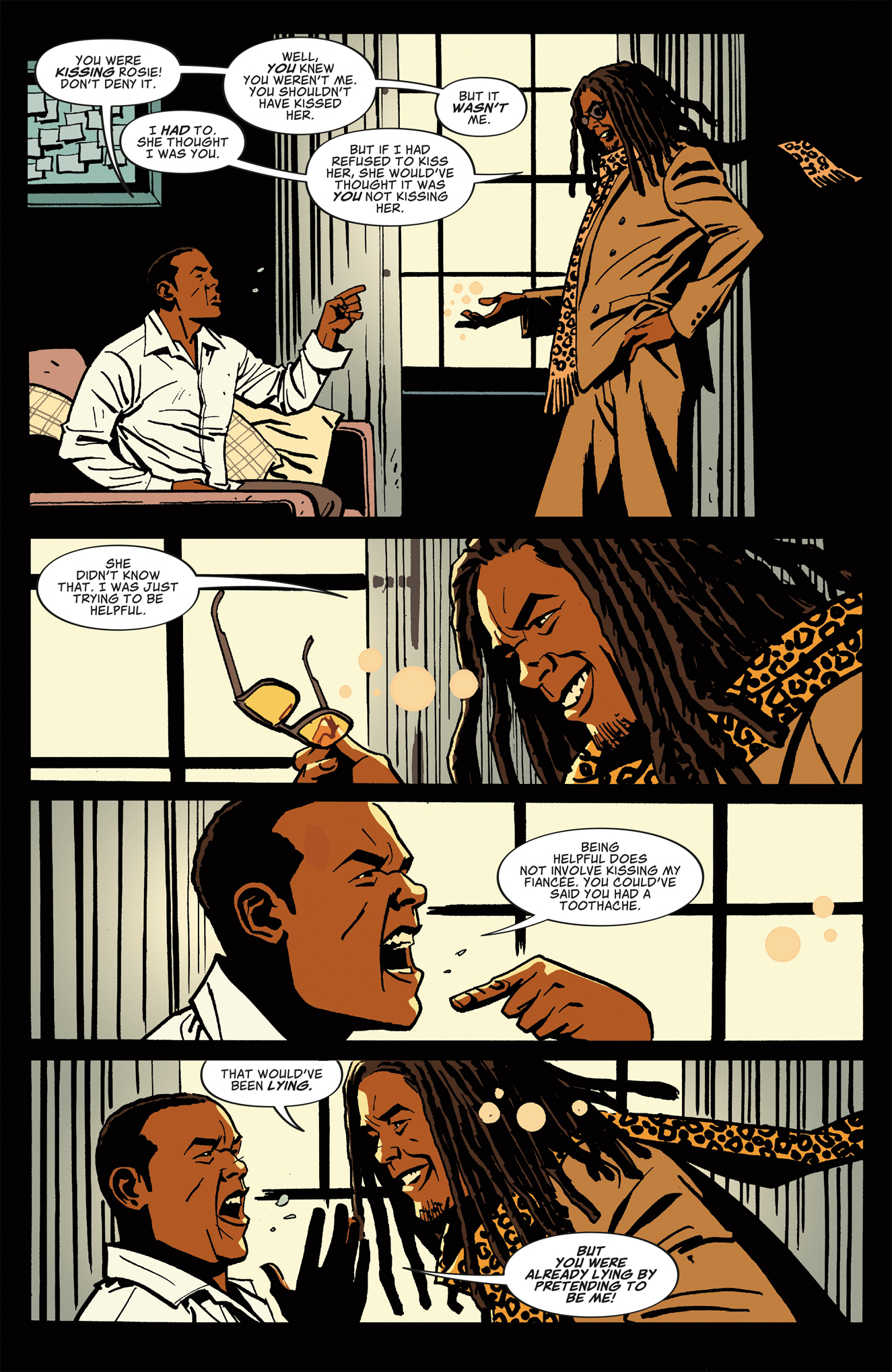 It’s brother vs. brother as Fat Charlie confronts Spider about kissing Rosie—and demands that his mysterious god-like sibling get out of his house and his life. Spider responds by moving in: to Fat Charlie’s spare room and on to sleeping with Fat Charlie’s fiancée. Oh, and Grahame Coates has the police looking into Fat Charlie, alleged embezzl