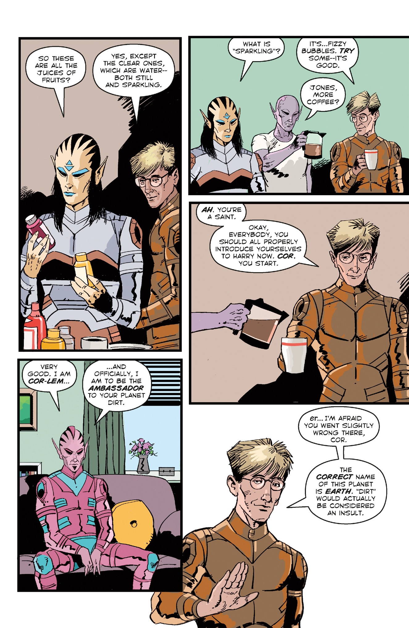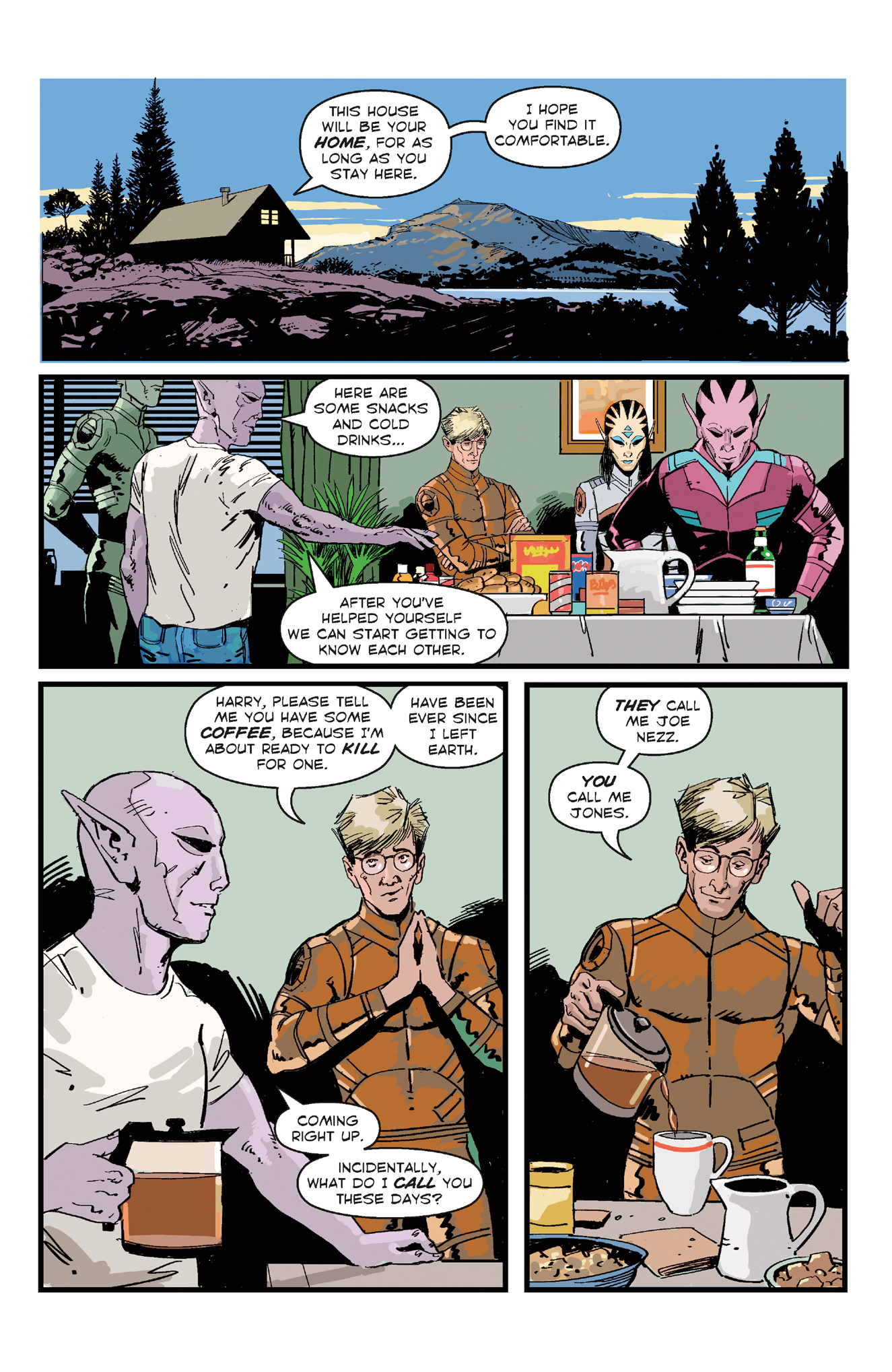 Return to Patience, USA, the seemingly sleepy town with numerous mysteries and secrets—and a handful of those are interplanetary! Harry and Asta, having recently welcomed their child Clover into the world, now welcome several visitors from Harry’s home planet.