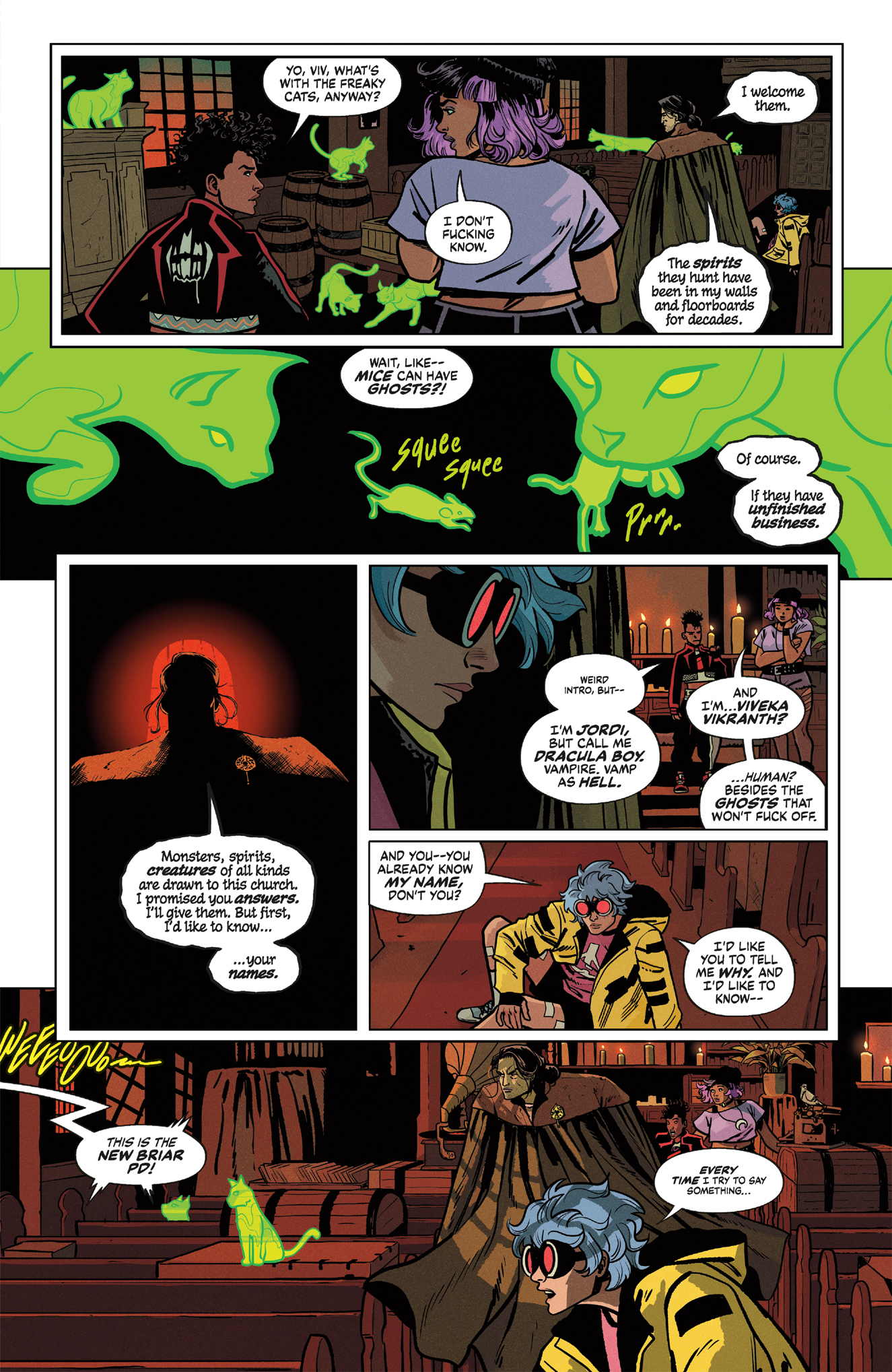Christopher, Dracula Boy, and Viv take refuge in a bizarre church and explore the subterranean boulevards of New Briar City, where the mysterious giant reveals secrets of monsterkind.