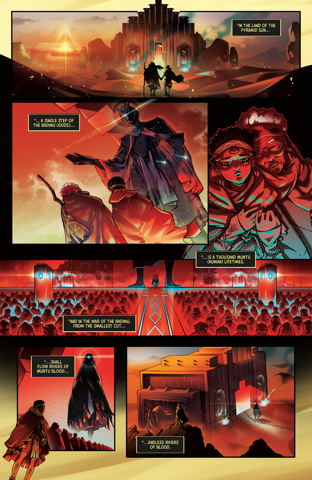 In the land of the pyramid sun, a single step of the Badimu is a thousand Muntu life times.
