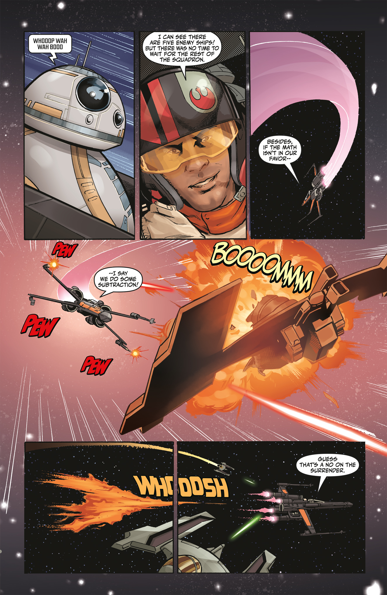 Poe Dameron, ace Resistance pilot, and his droid companion BB-8 are sent to investigate a piece of First Order tech used to decode Resistance messages. Standing between them and their objective is an infamous TIE fighter pilot. Can Poe out-fly his enemy, or will the mission go down in flames before it begins?