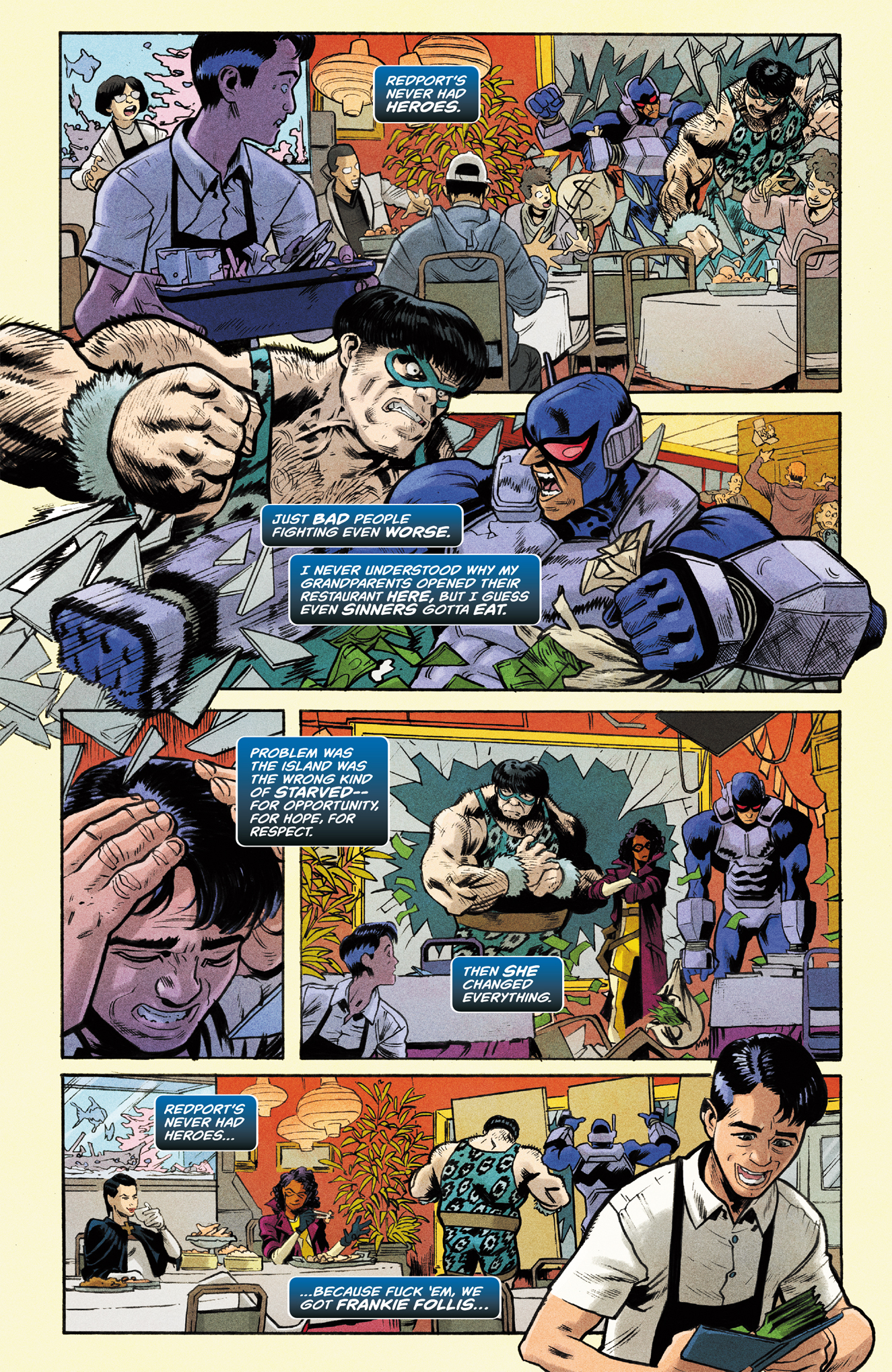 The hit superhero saga that’s Watchmen meets The Wire returns from Patton Oswalt and Jordan Blum, showrunners of Marvel’s M.O.D.O.K on HULU, and superstar artist Scott Hepburn (Tom Morello’s Orchid).