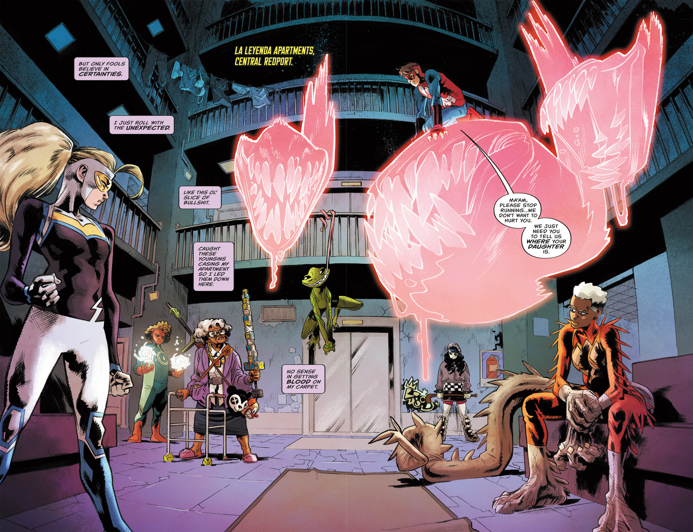 Loretta Follis has been a mother, a grandmother and an infamous supercrook named Toy Queen... but tonight she's become a target. When a group of ruthless teen heroes come to her apartment complex to capture her as bait for her daughter Frankie, Loretta decides to pick up her Jack-in-the-Box gun for one last fight. It's octogenarian supervillain vs tween sidekick psychopaths in brutal winner takes all. The body count will rise in a story we call “Last Stand at La Leyenda.”