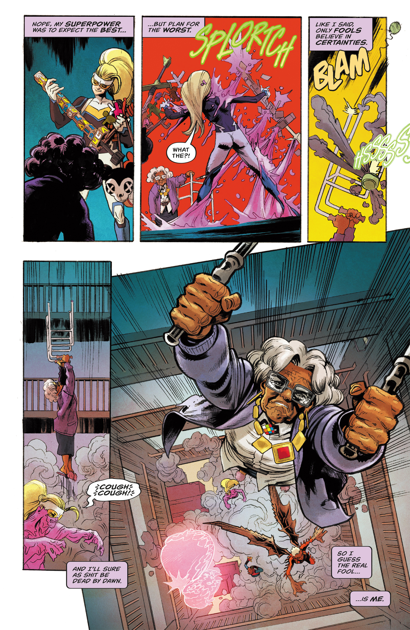 Loretta Follis has been a mother, a grandmother and an infamous supercrook named Toy Queen... but tonight she's become a target. When a group of ruthless teen heroes come to her apartment complex to capture her as bait for her daughter Frankie, Loretta decides to pick up her Jack-in-the-Box gun for one last fight. It's octogenarian supervillain vs tween sidekick psychopaths in brutal winner takes all. The body count will rise in a story we call “Last Stand at La Leyenda.”