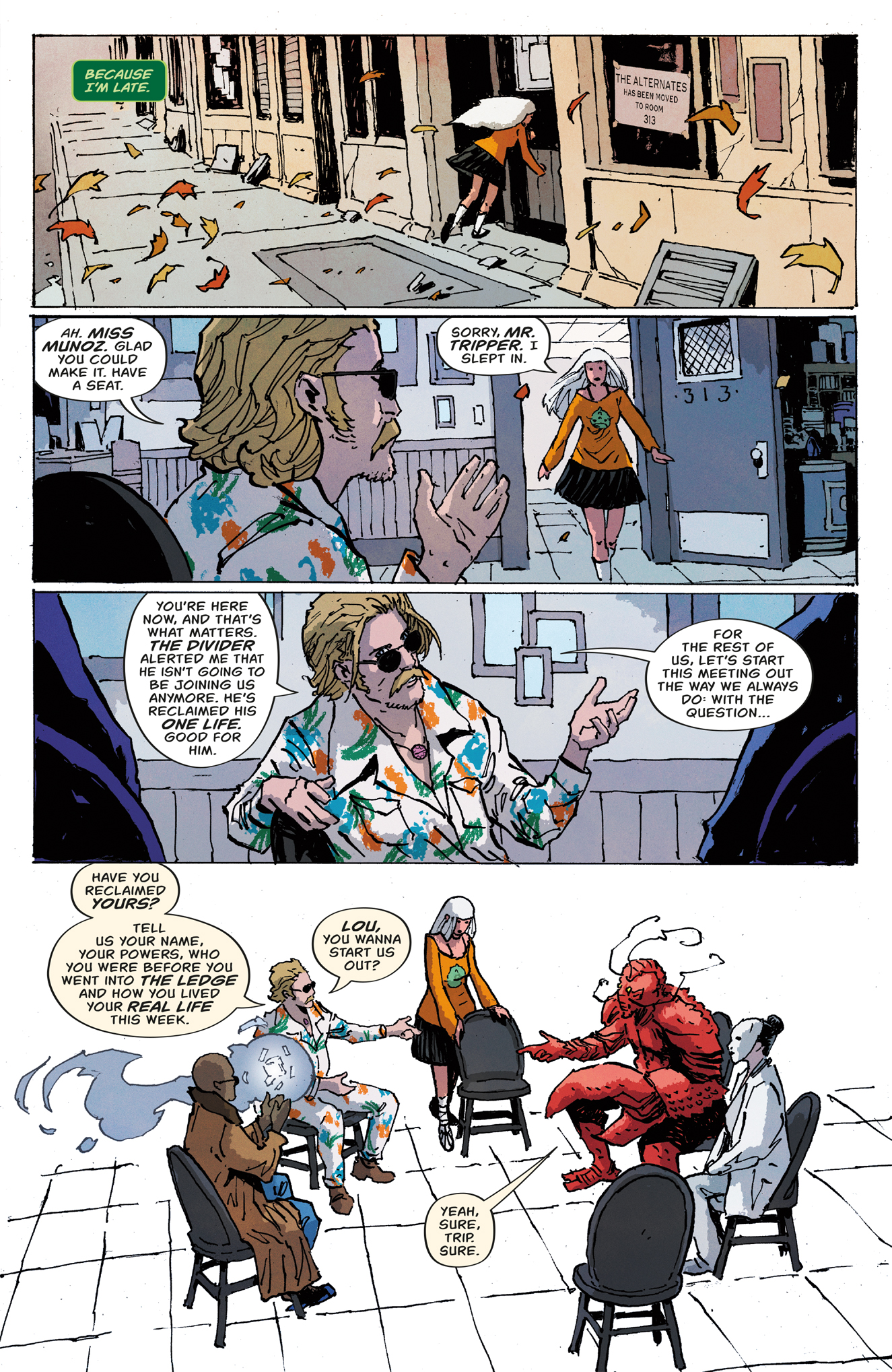 Mary the Multi-Monster! The Tripper! Crab Louie! Kid Curious! Persona! Formerly the offbeat b-list superheroes, The Alternates, who seemingly sacrificed themselves to stop an invasion from another dimension. Instead they were transported to a mirror reality where they lived complex lives in a more four-dimensional existence--expanding both their powers and consciousness. Five years later they've returned to Twilight City, struggling to reacclimate to their old lives in a traditional two-dimensional superhero world--in withdrawal from the vivid ones they left behind. When elements from this alternate reality turn up as a dangerous new street drug, some of the heroes band together to destroy it, while others succumb to its temptation.
