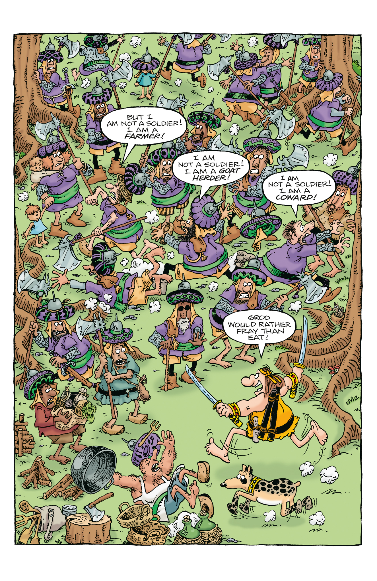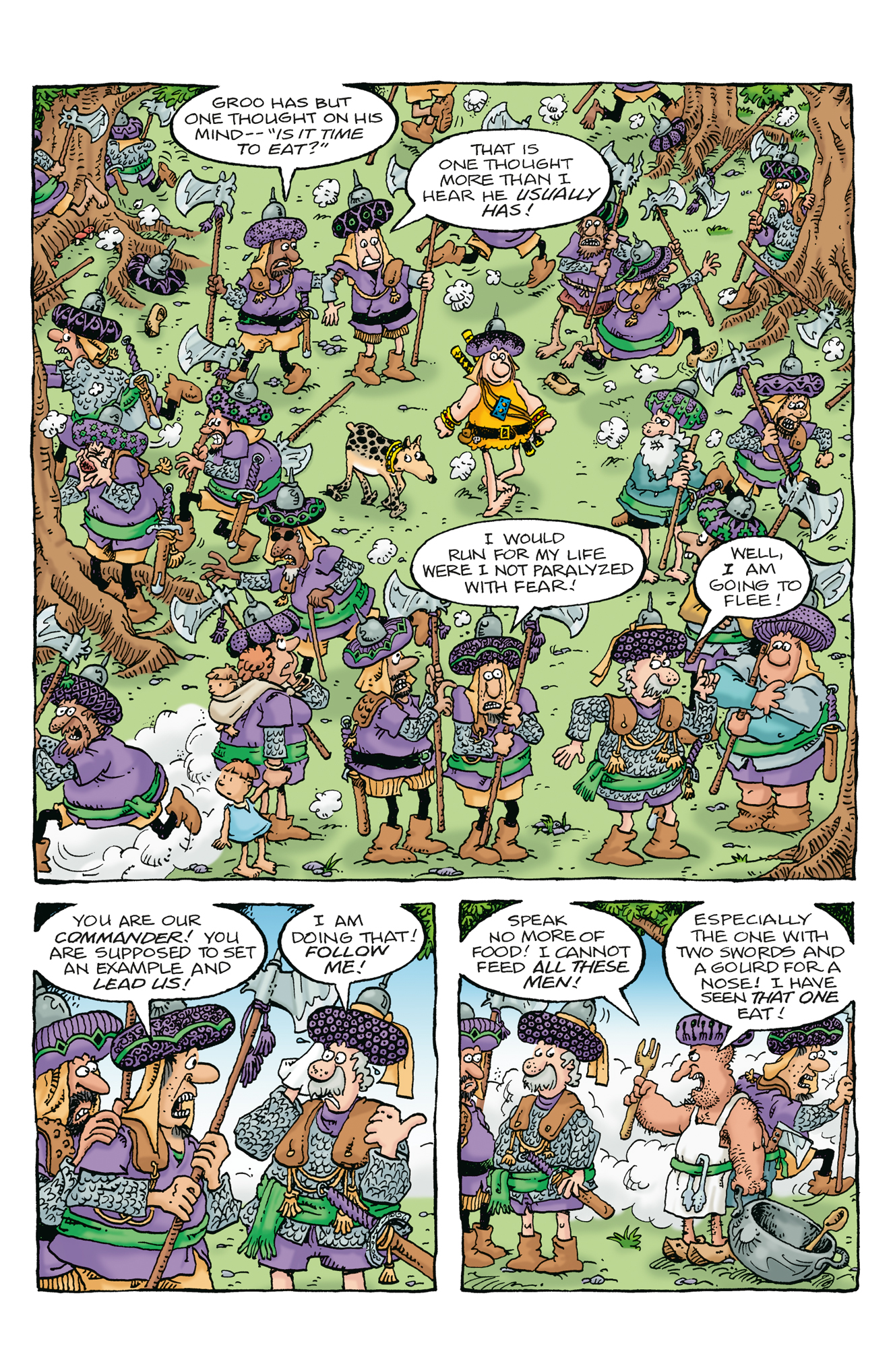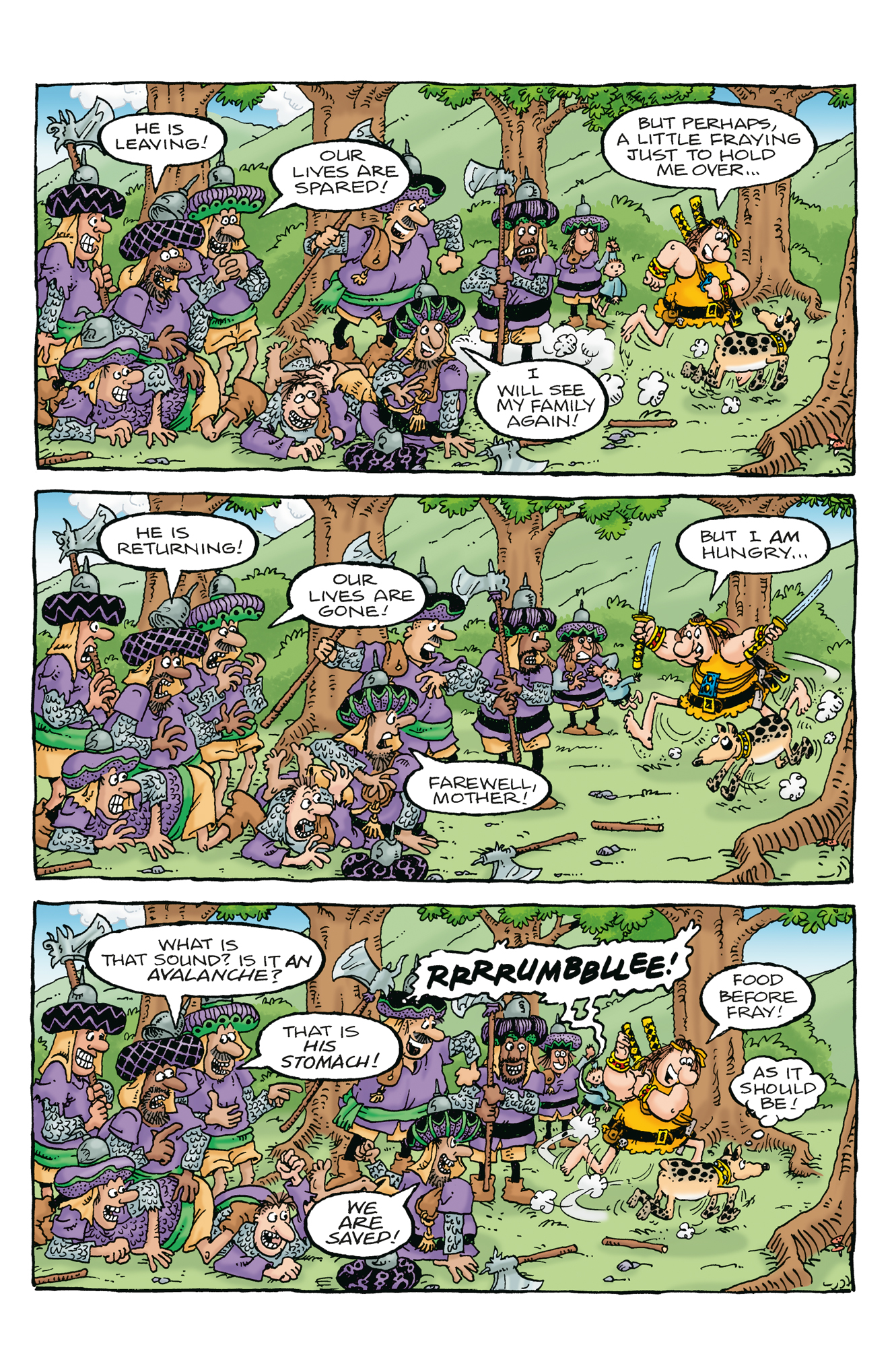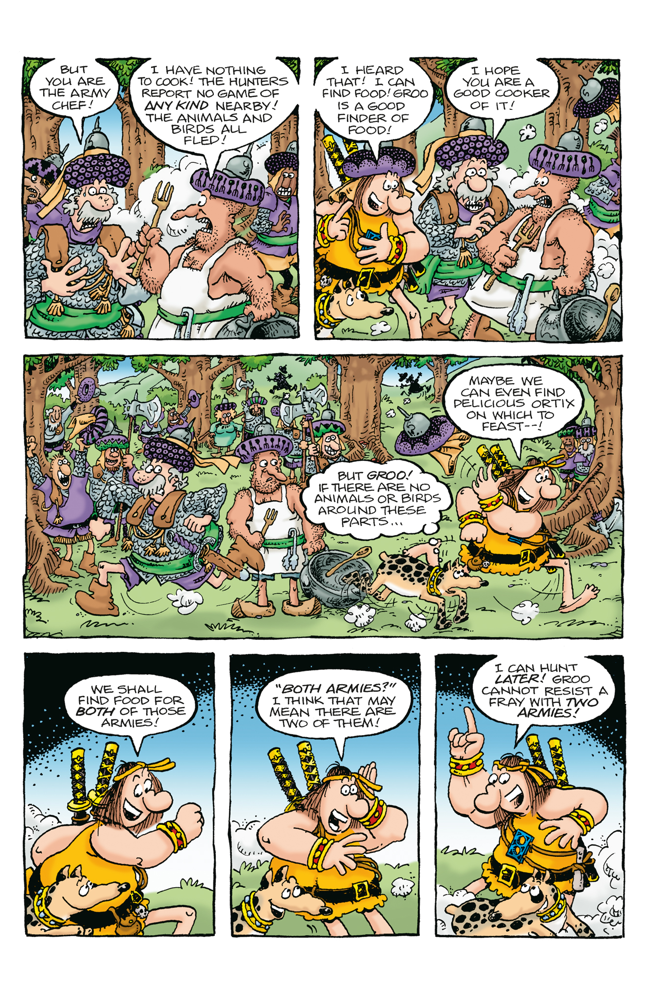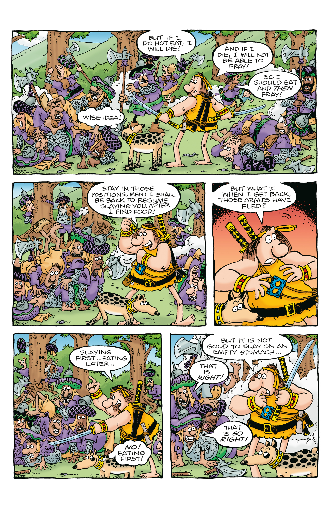 Without a kopin to his name--or a meal to his stomach--the thoughtless barbarian Groo is going to have to do the unthinkable if he wants to eat... Will he learn something new? Also features an original Rufferto strip--the real brains behind this comic!