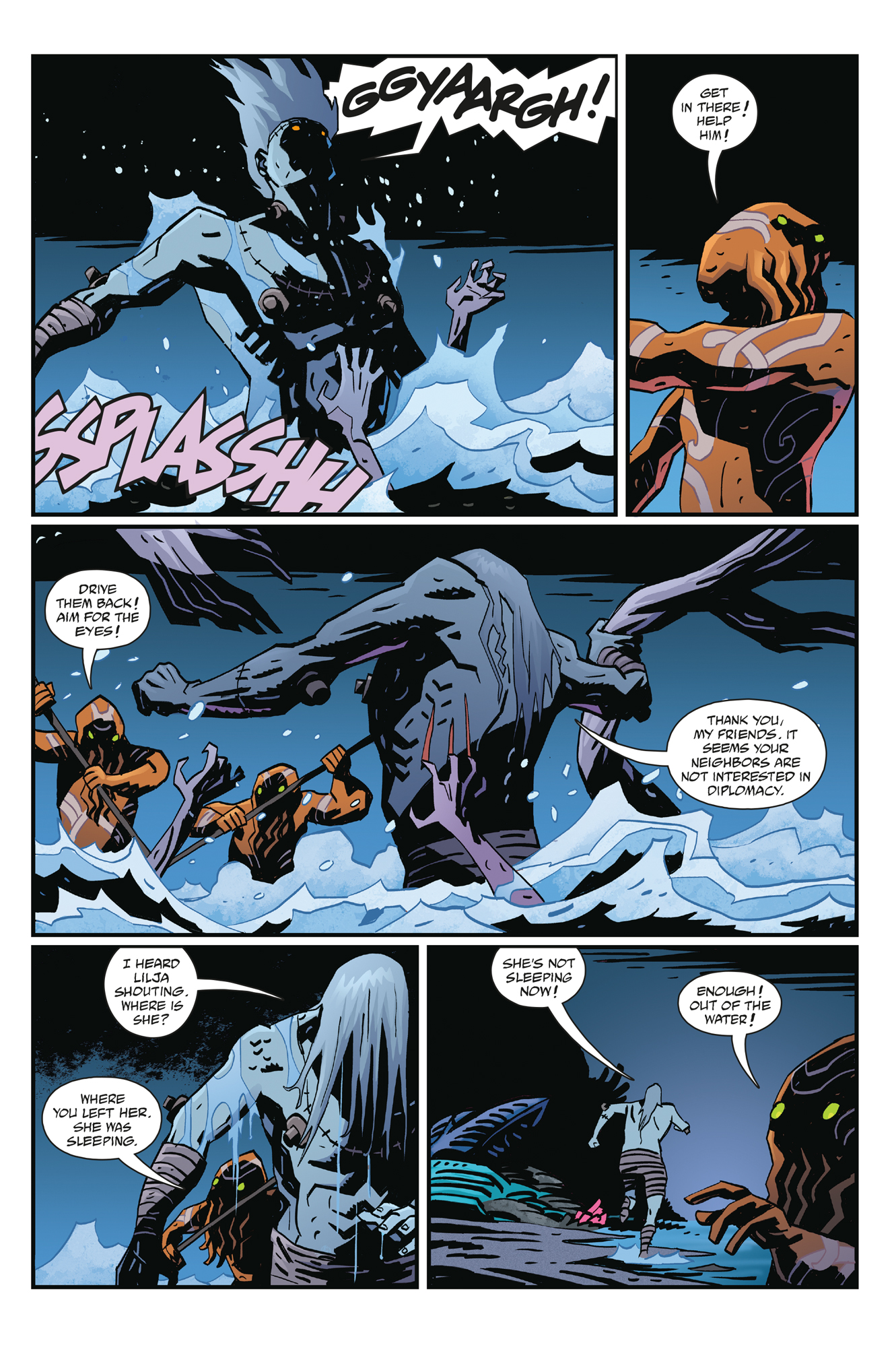 A legendary creature threatens Frankenstein and Lilja below the water’s surface, while an evil force above infects everything around it.