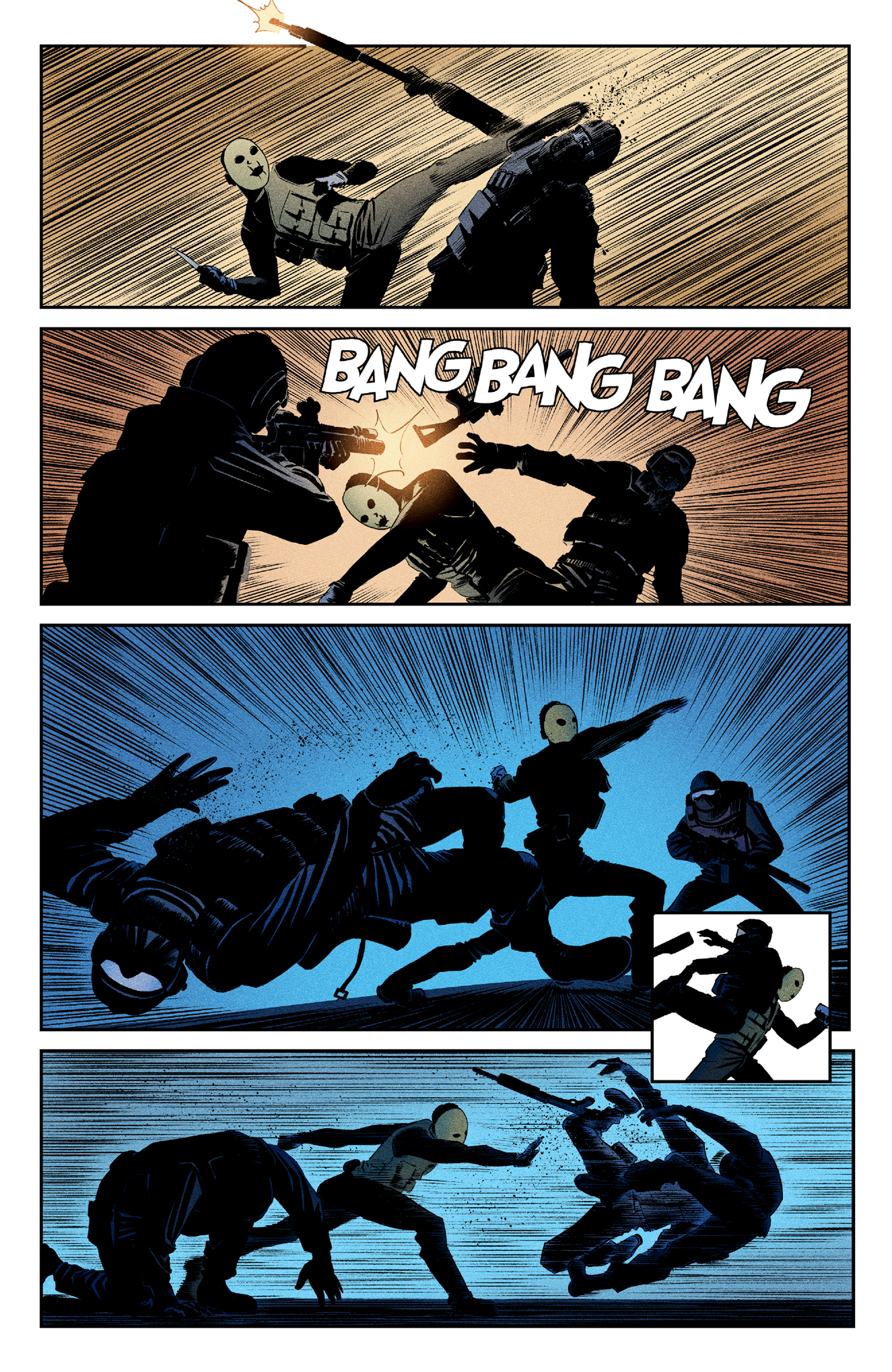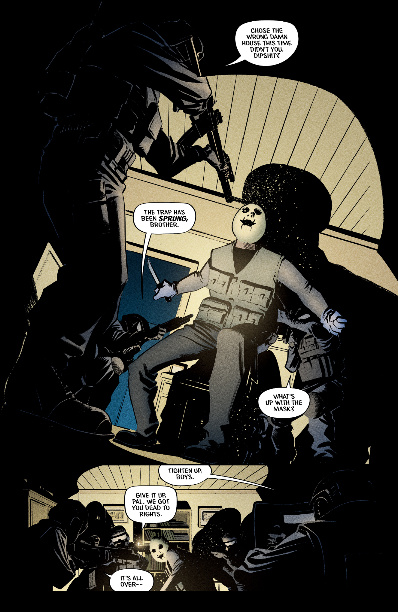 Serial Killer Mark Christopher Ewing has been arrested and a SWAT team trap sprung for Daniel Dodson. Is this the end for our murderous protagonists? Does the dark competition between the two to break the serial killer state kill record end here? Come find out in the second to last issue of Those Not Afraid by Kyle Starks and Patrick Piazzalunga.
