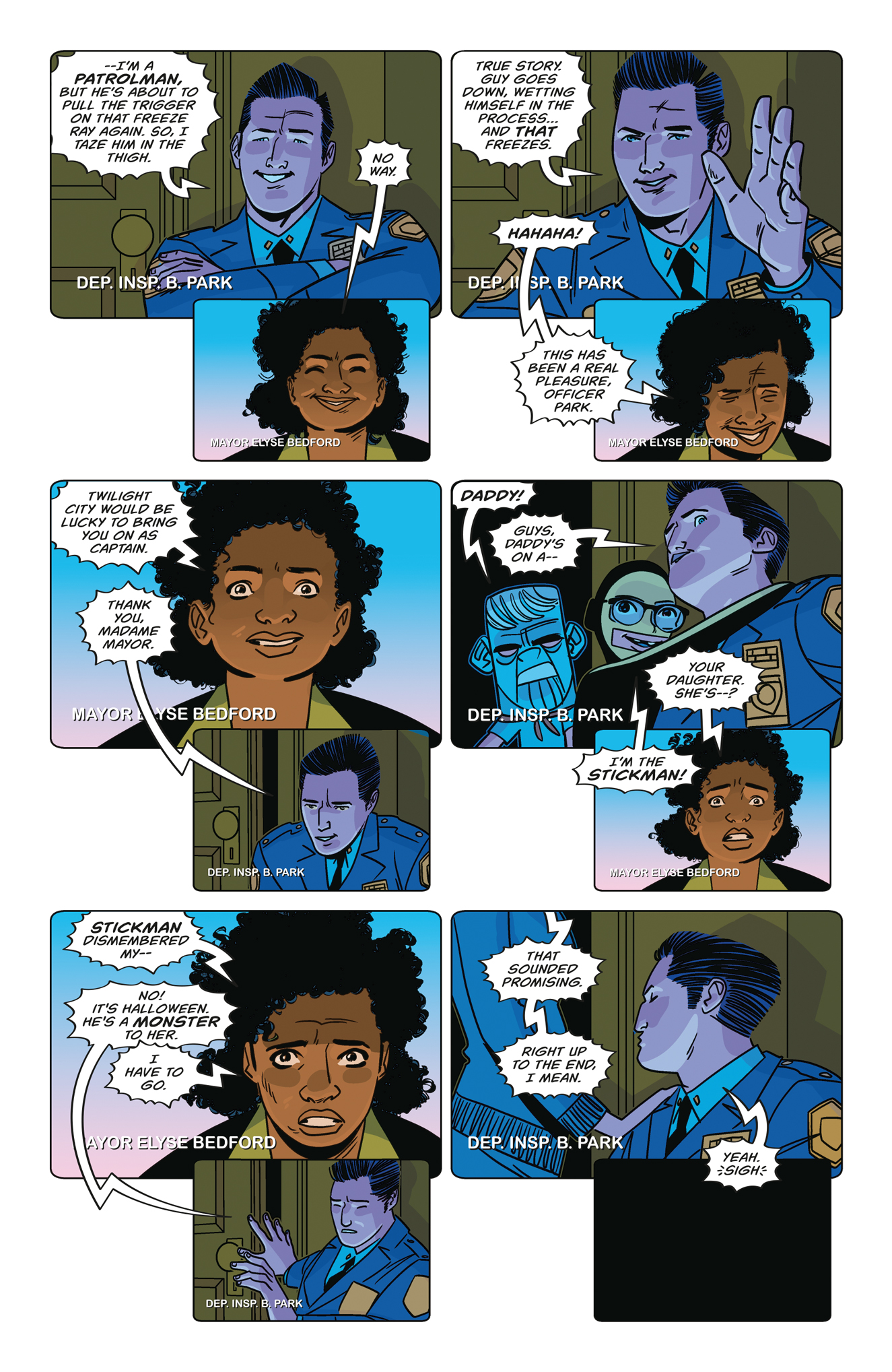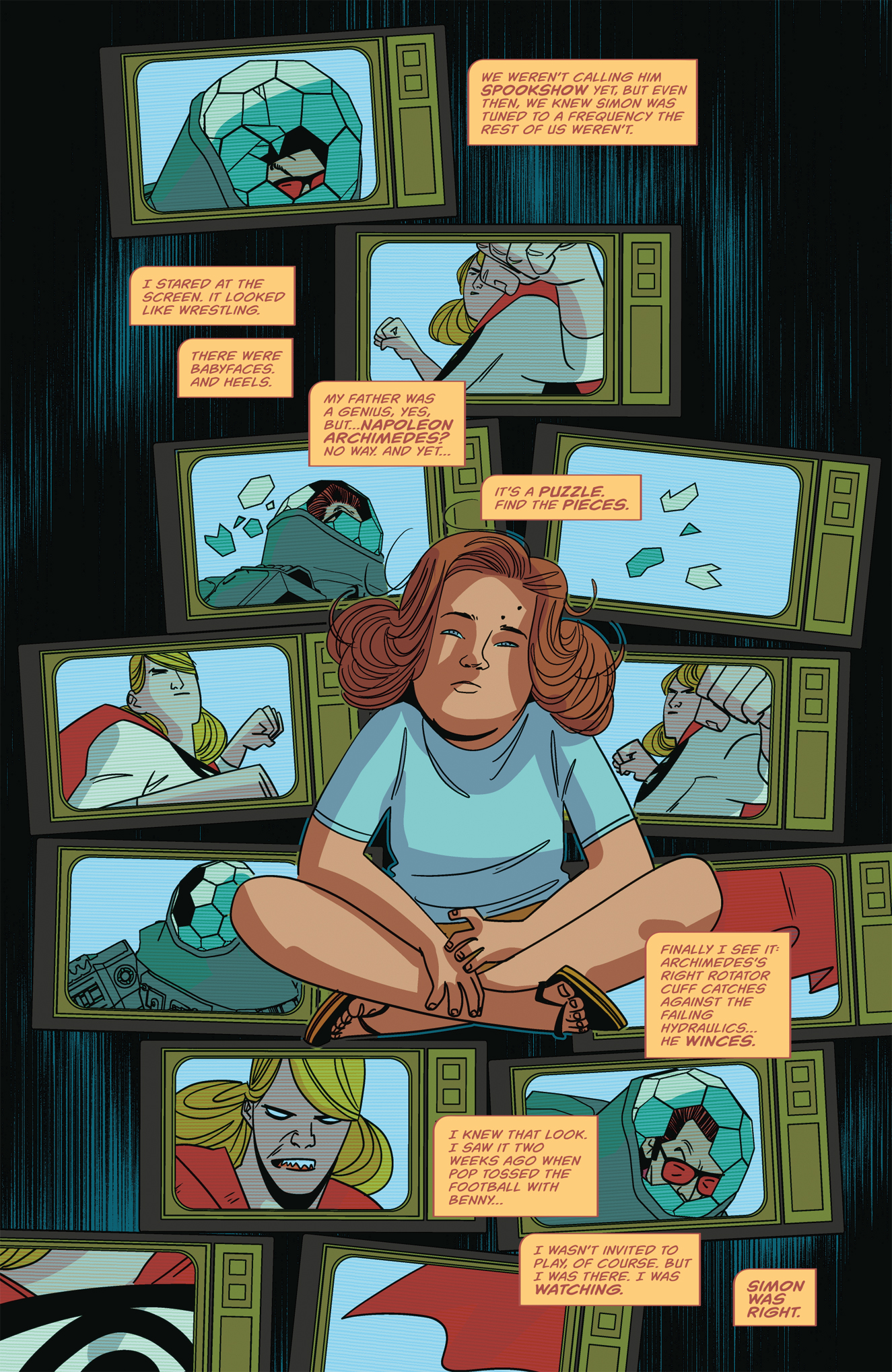 Napoleon Archimedes breaks the news to the family that he's dying, including, of all people, his longtime arch-nemesis The Searcher... None of them take it particularly well. Then there's heists, androids, handball, and a look back to "That Fateful Day" when Agatha realized her father was the most feared criminal on the planet. Plus, the secret origin of The Searcher is finally revealed.