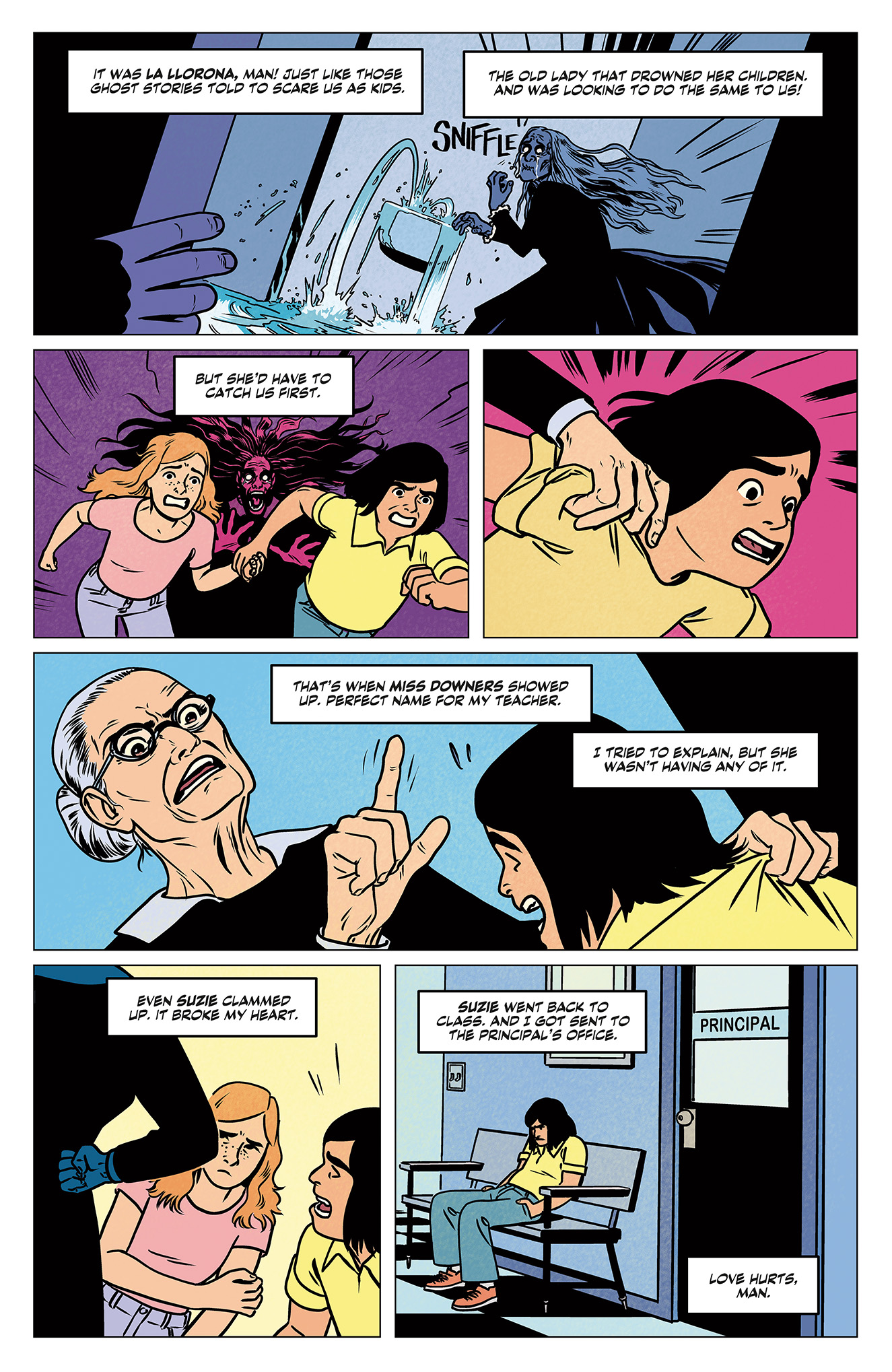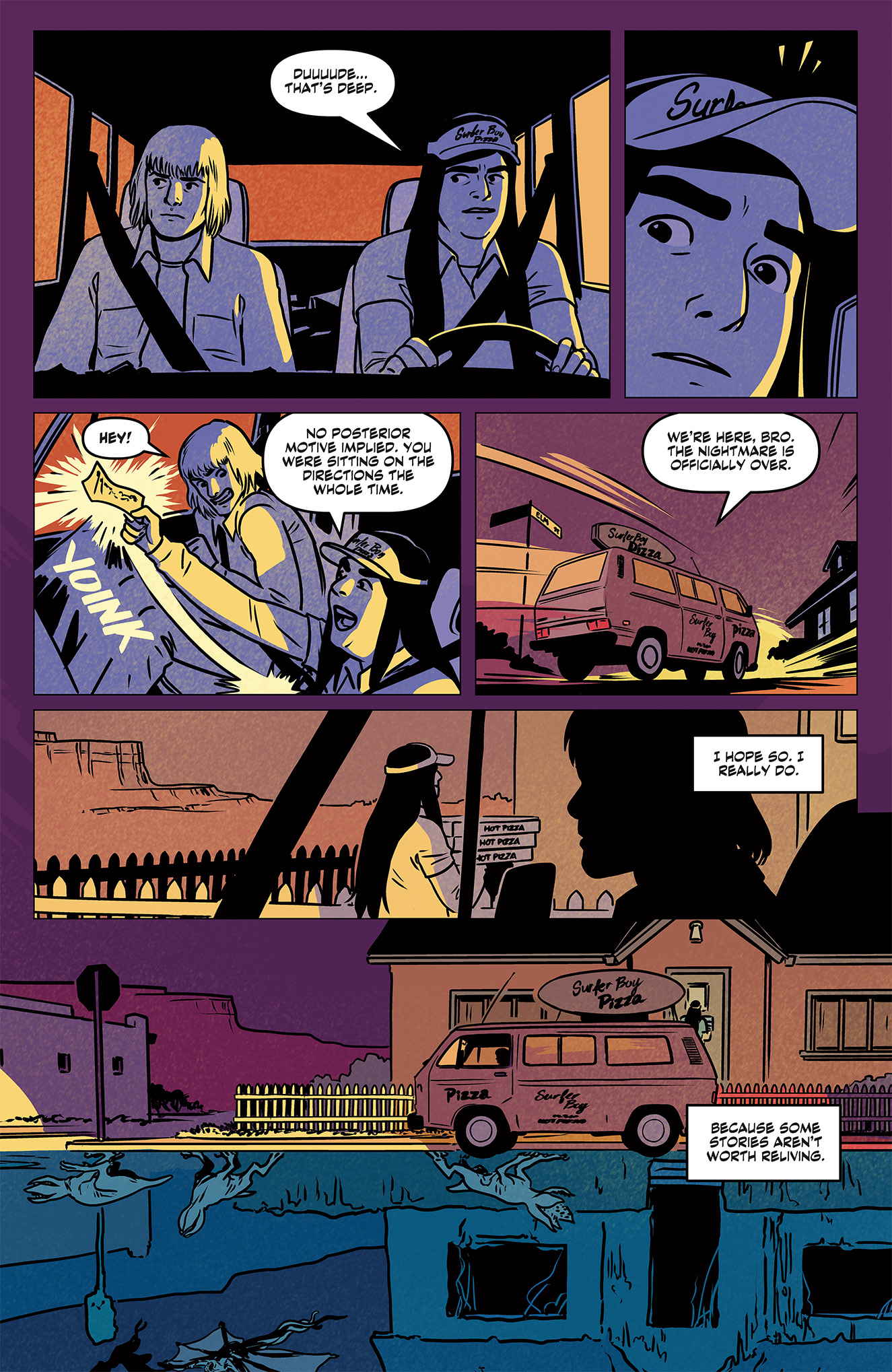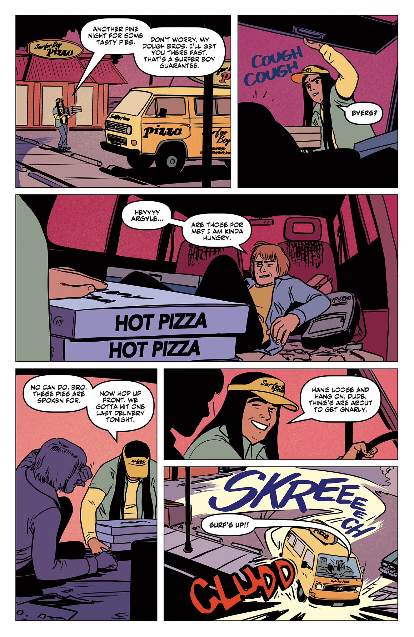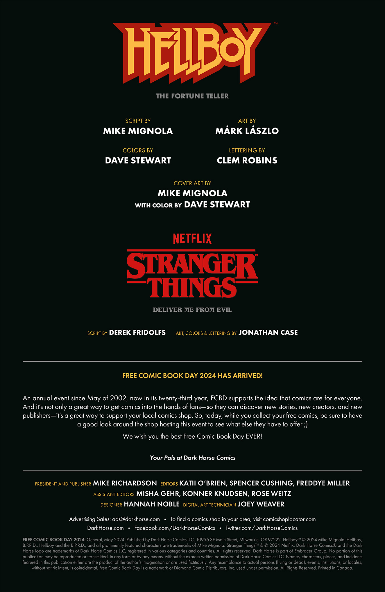 Um . . . stories from Mike Mignola’s Hellboy, AND Stranger Things? Yes, please! In Hellboy, “The Fortune Teller,” Hellboy consults a crystal ball-reader for help solving a murder, but things go off the rails when she gets distracted reading Hellboy’s own future. Then, in Stranger Things, “Deliver Me From Evil,” Argyle and Jonathan swap fantastical and scary tales as they make one last pizza delivery for the night.
