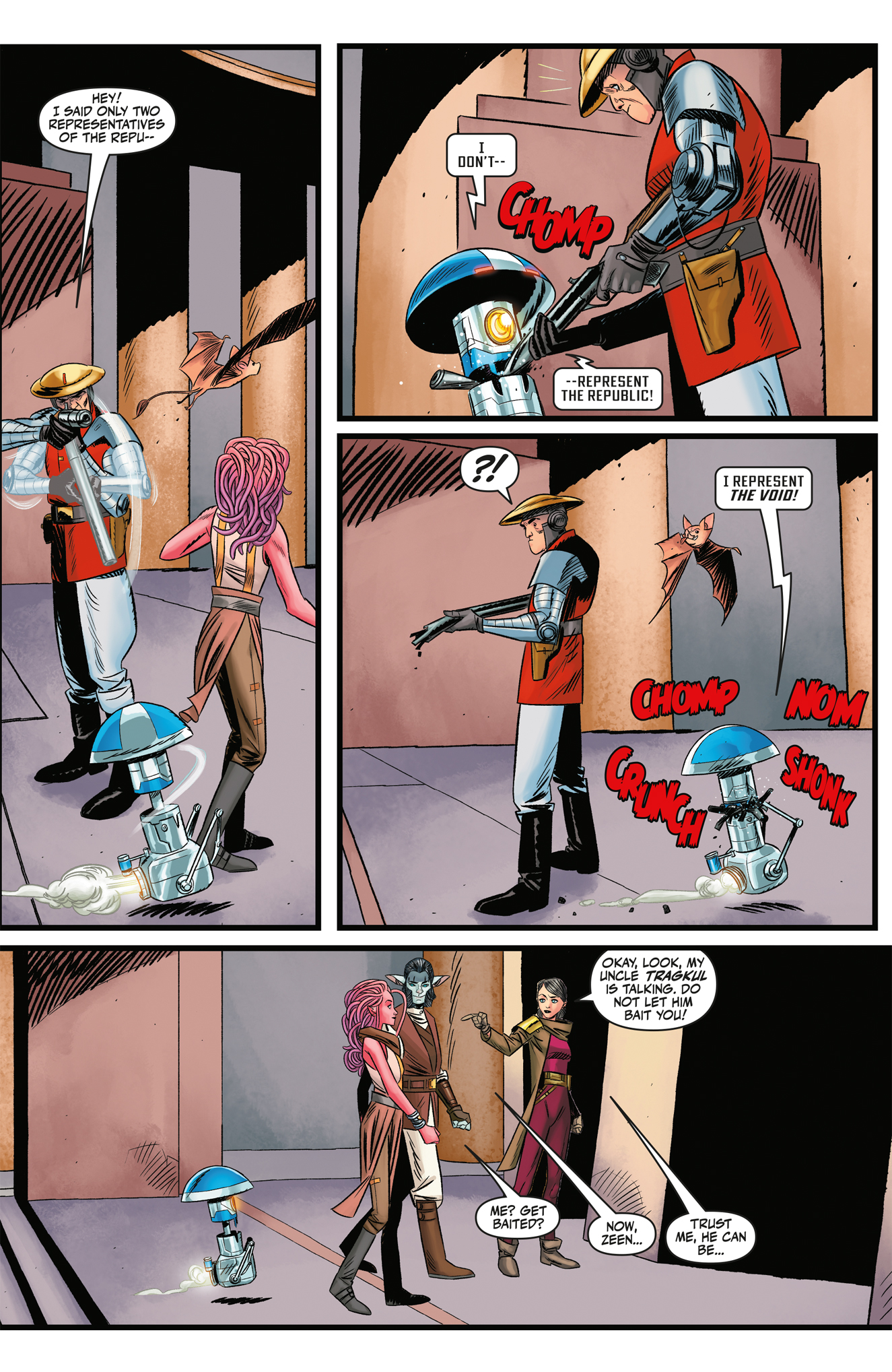 Zeen, Lula, and their team are looking for allies to join the battle against the dastardly Nihil. Their search leads them to an audience with the Founding Families of Eriadu. But Marchion Ro’s accomplices in the capital city won’t make things easy!
