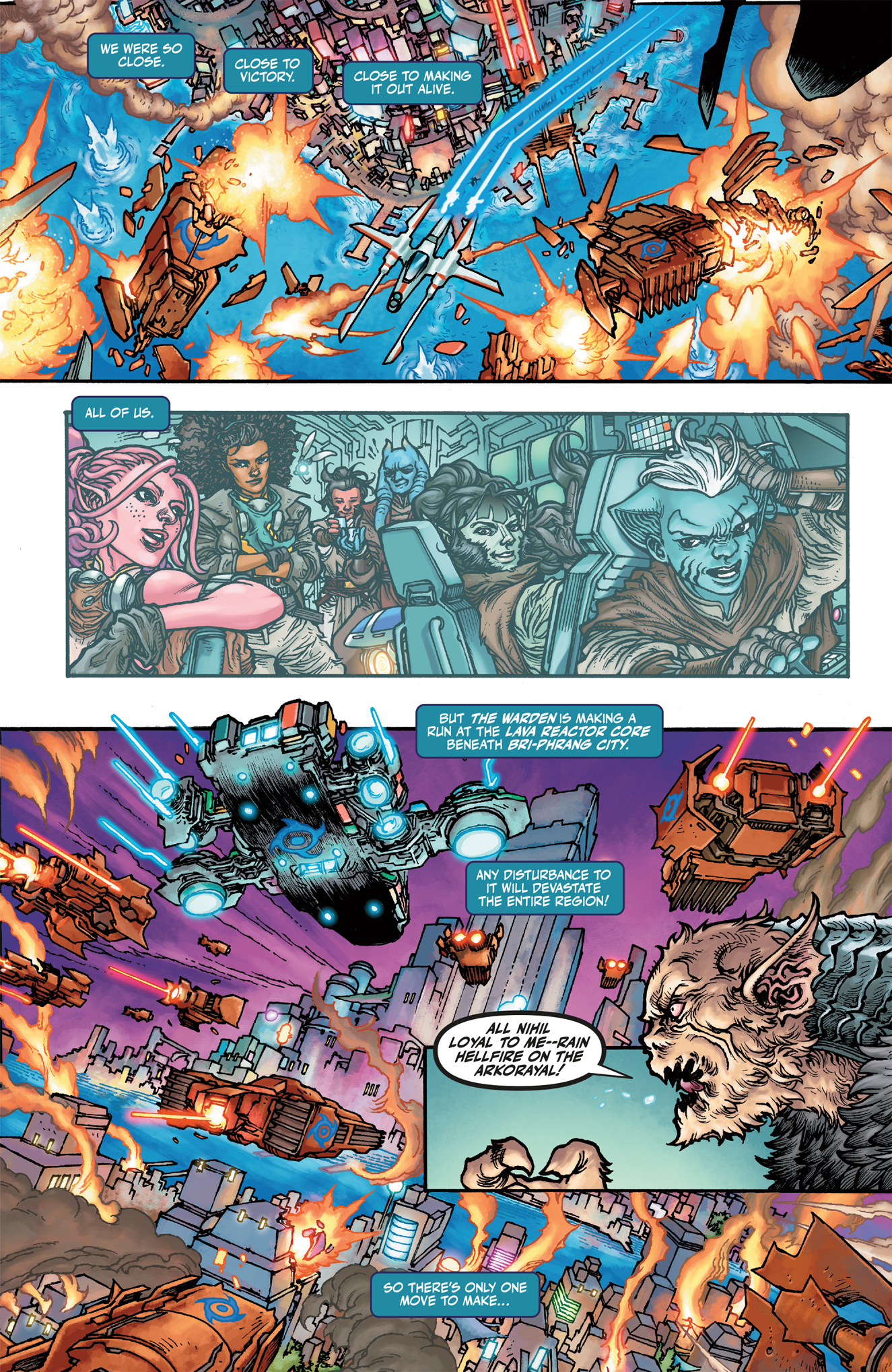 As Battle of Eriadu continues, the leader of the resistance, Jedi Knight Farzala Tarabal is faced with an impossible decision: risk the lives of his friends, or forfeit their chances of defeating the Nihil. It’s a dilemma that sees Farzala descend to a dark place, only to discover a surprising confidant.