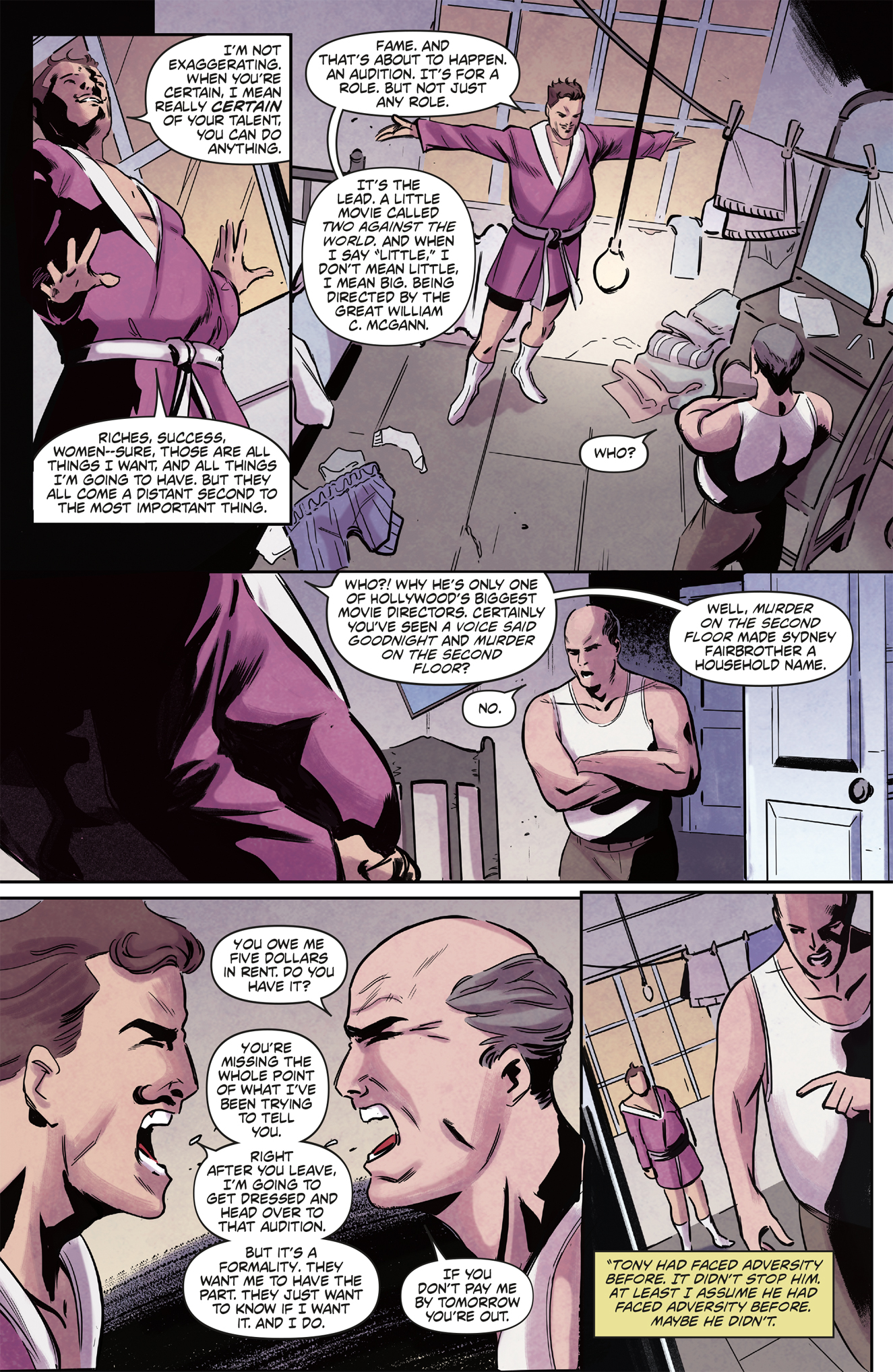 It's the 1930s and aspiring actor Tony Hollywood is about to make his big break! He’s finally got an audition for the role that will change his life, but a flat tire sends him to a different stage. Breaking down outside a wrestling arena lands him a new part to play… the Masked Macher! Hey, it pays (even if no one knows what a “macher” is).